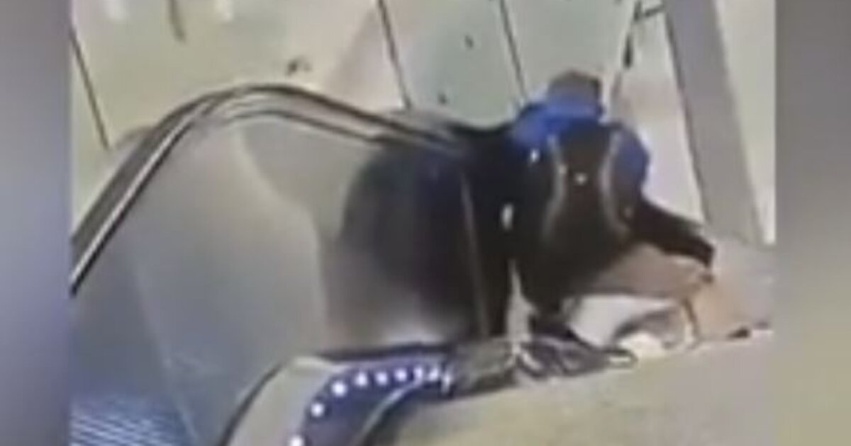 Όπως φαίνεται και από τις εικόνες που καταγράφηκαν σε βίντεο το παιδί παγιδεύεται ανάμεσα στις κυλιόμενες σκάλες και ένα τζάμι.