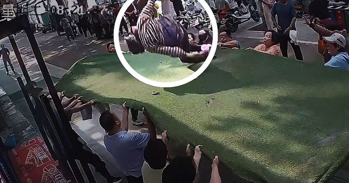 Πέφτοντας σε αυτό το πρόχειρο δίχτυ ασφαλείας, η εκατονταετής γιαγιά γλύτωσε τα χειρότερα!