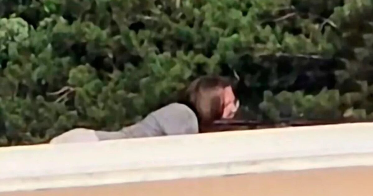 Στο βίντεο φαίνονται πολίτες να έχουν εντοπίσει τον 20χρονο Τόμας Μάθιου Κρουκς να έχει ανέβει στη σκεπή από την οποία πυροβόλησε κατά του πρώην πρόεδρου των ΗΠΑ.