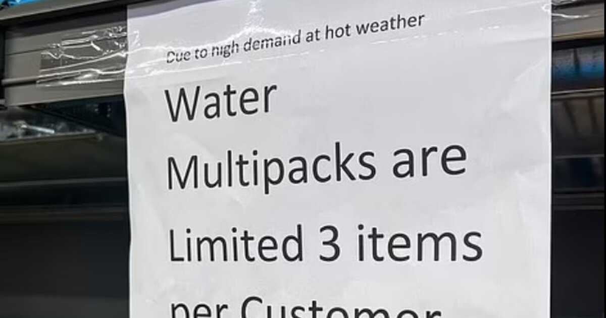 Supermarkets begin rationing bottled water as a drought is OFFICIALLY declared in England https://t.co/buB3oJ0XKp pic.twitter.com/0Vw0zqIvY0