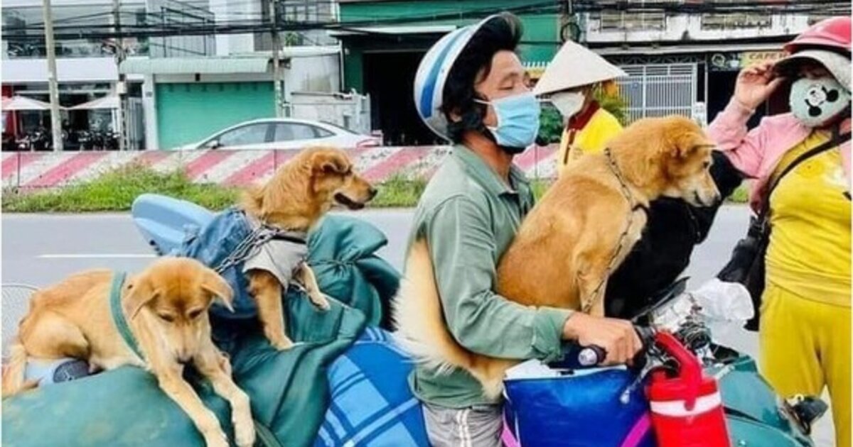 Ο Pham Minh Hung με την σύζυγό του, Nguyen Thi Chi Em, έγιναν viral όταν κυκλοφόρησαν βίντεο και φωτογραφίες τους να ταξιδεύουν με μια σχεδόν αγέλη σκυλιών πάνω στη μοτοσικλέτα τους.