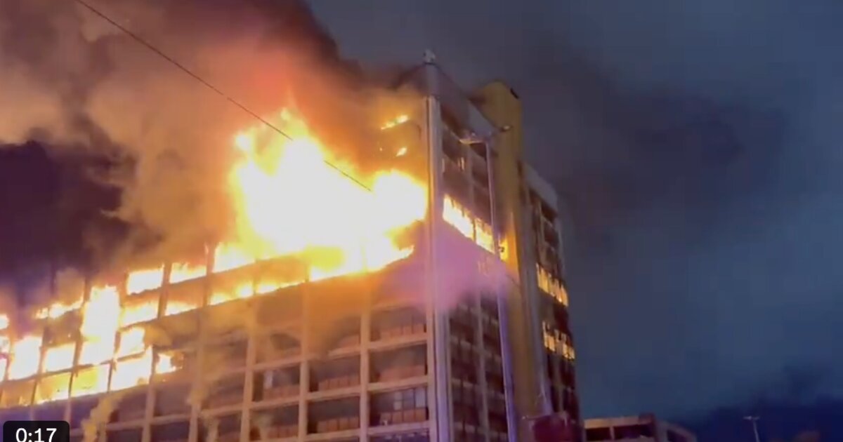 Η μεγάλη φωτιά εκδηλώθηκε στο κτίριο 11 ορόφων Botha Sigcau στην πόλη Mthatha του Ανατολικού Ακρωτηρίου στη Νότιο Αφρική, το οποίο στεγάζει πολλαπλά κυβερνητικά τμήματα.
