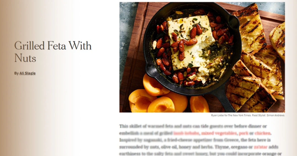 Με μια συνταγή για την φέτα, η γνωστή αμερικανική εφημερίδα The New York Times υποστηρίζει ότι «όλα γίνονται καλύτερα με φέτα».