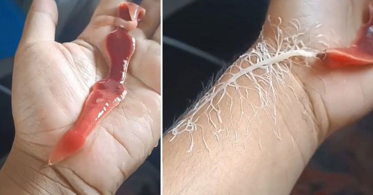 Σκέτη ...αηδία. Στην Ταϊλάνδη, ένα ...κατοικίδιο σκουλήκι της συνομοταξίας Νεμερτέα, ή σκουλήκι κορδέλα όπως είναι γνωστό, εκπλήσσει τον φροντιστή του. Το σκουλήκι, μήκους 13 εκατοστών, πάνω στο χέρι του φροντιστή του εκτείνει μέρος του στόματος του από το οποίο ξεδιπλώνει έναν παράξενο περίπλοκο ιστό που θυμίζει ρίζες δέντρου.