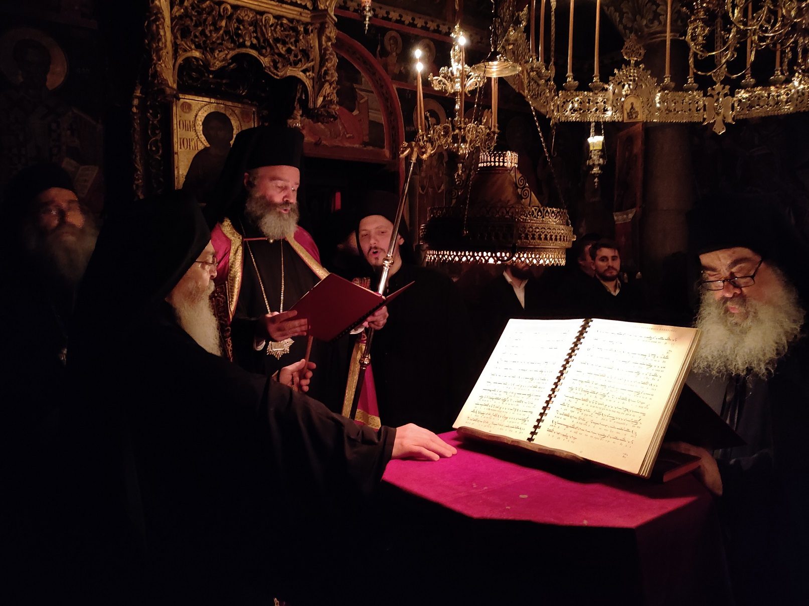 Ο Σεβασμιώτατος, που τις προηγούμενες ημέρες ευρίσκετο στο Άγιον Όρος, έγινε δεκτός σύμφωνα με το αγιορειτικό τυπικό στην είσοδο της Μονής, κατά την παραμονή της εορτής