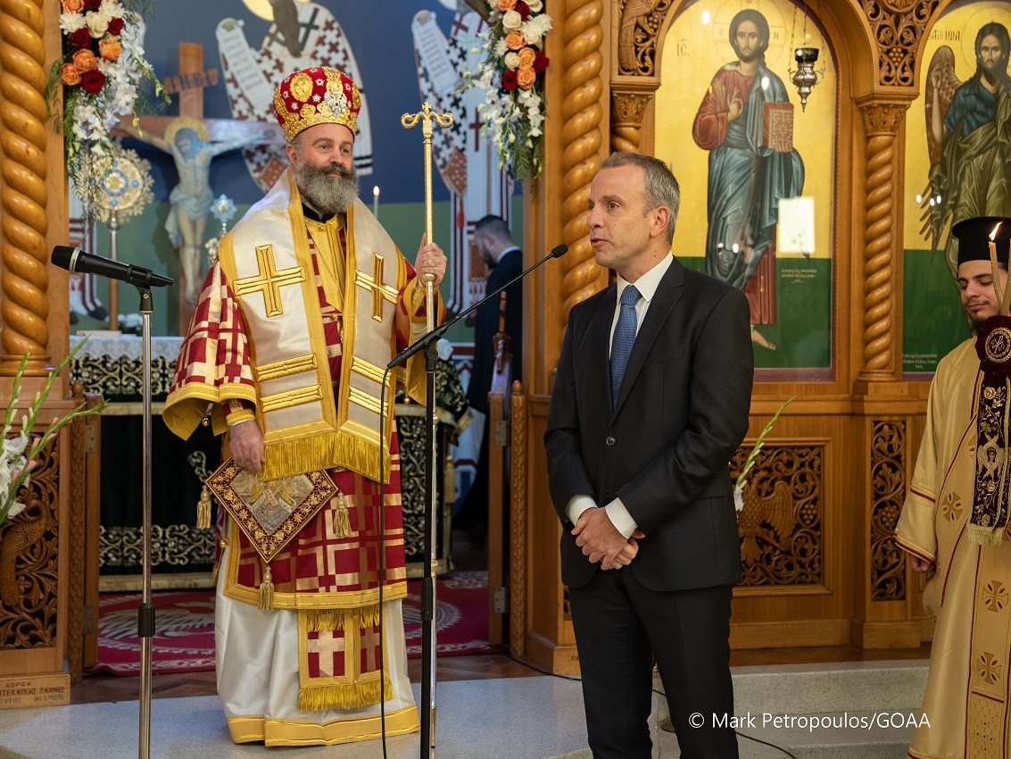 Σημειώνεται ότι ανάμεσα στο πολυπληθές εκκλησίασμα στον Ι.Ν. Αγίων Πάντων βρισκόταν ο Πρόξενος της Ελλάδος στο Σύδνεϋ, κ. Ιωάννης Μαλλικούρτης, ο οποίος ανέλαβε προσφάτως τα νέα του καθήκοντα. Ο Αρχιεπίσκοπος κ.κ. Μακάριος καλωσόρισε και εν εκκλησία τον νέο Πρόξενο και του ευχήθηκε καλή δύναμη και καλή διακονία, για τη δόξα του Γένους και της Πίστεως. Ο κ. Μαλλικούρτης, απευθύνοντας σύντομο χαιρετισμό, δεσμεύτηκε ενώπιον των ομογενών ότι ο ίδιος και οι συνεργάτες του στο Ελληνικό Προξενείο διαθέτουν τη βούληση ώστε να καταβάλουν κάθε δυνατή προσπάθεια για την καλύτερη δυνατή εξυπηρέτησή τους.
