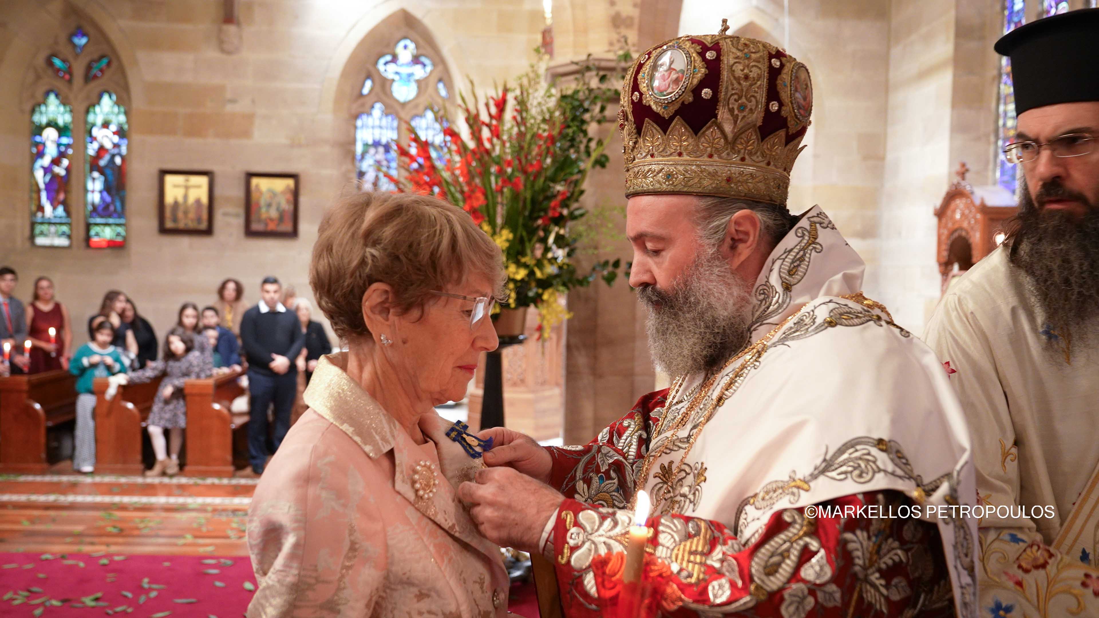Τη χαρμόσυνη Ακολουθία ελάμπρυνε έτι περαιτέρω η απονομή του παρασήμου του Τάγματος των Φιλοχρίστων, μετ’ αστέρος, στην Κυβερνήτρια της Νέας Νοτίου Ουαλίας κ. Margaret Beazley. Η τιμηθείσα έχει επιδείξει ανυπόκριτο σεβασμό και ειλικρινή διάθεση υποστηρίξεως προς την Ορθόδοξη Εκκλησία και το χριστεπώνυμο πλήρωμά της, όπως αναγνώρισε ο Σεβασμιώτατος κ.κ. Μακάριος κατά την απονομή της ανωτέρας τιμητικής διακρίσεως της Ιεράς Αρχιεπισκοπής Αυστραλίας. «Υπήρξατε πιστή φίλη και ένθερμη υποστηρίκτρια της ελληνορθόδοξης κοινότητας», σημείωσε κατά την προσφώνησή του και προσέθεσε: «Η παρουσία σας εδώ σήμερα, αποτελεί απόδειξη του αμοιβαίου σεβασμού που χαρακτηρίζει την πολυπολιτισμική κοινωνία μας και του πνεύματος ενότητας, το οποίο αταλάντευτα επιδιώκετε».