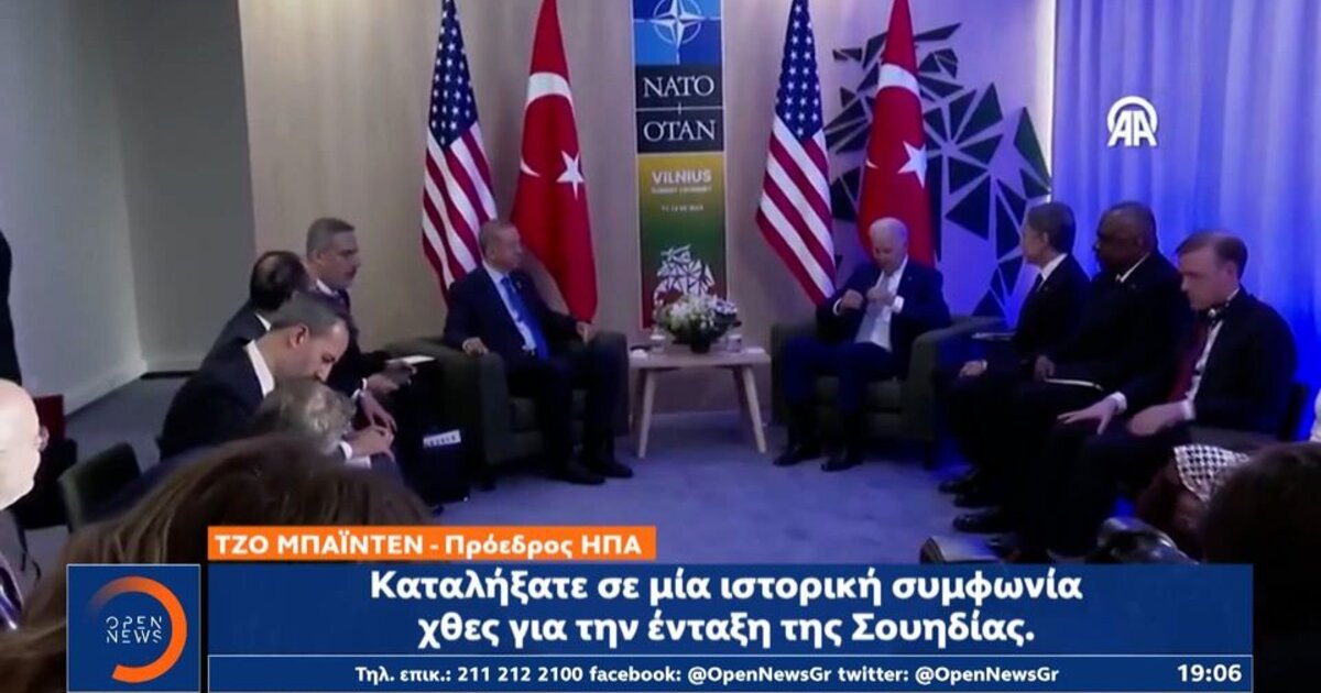 Στη συνάντηση που είχαν οι δύο ηγέτες στο περιθώριο της συνόδου του ΝΑΤΟ στο Βίλνιους, ο Μπάιντεν χαιρέτισε τη θετική κατάληξη μιας σημαντικής διπλωματικής προσπάθειας, στόχος της οποίας ήταν να σταματήσει ο Ερντογάν να μπλοκάρει την υποψηφιότητα της Σουηδίας.