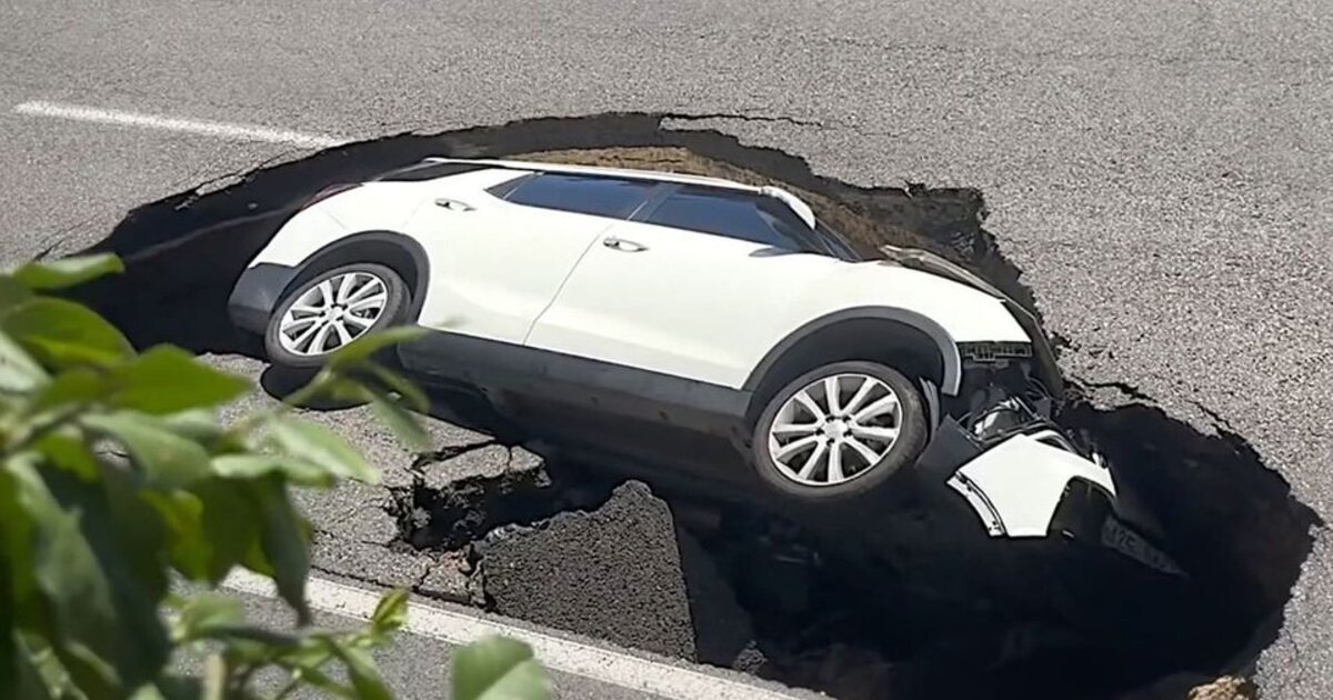 Ο δρόμος "κατάπιε" αυτοκίνητο