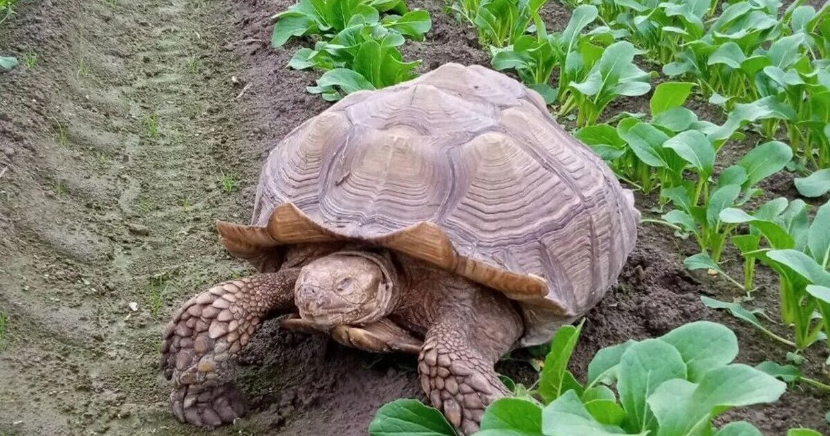 Η φροντίδα μιας χελώνας sulcate βάρους 16 κιλών δεν είναι μικρή υπόθεση, και ίσως γι' αυτό ο Φρανκ εγκαταλείφθηκε πρόσφατα σε ένα χωράφι με σπανάκι στη Βρετανική Κολομβία του Καναδά. Και τώρα οι νέοι φροντιστές του προσπαθούν να του βρουν ένα μόνιμο σπίτι.