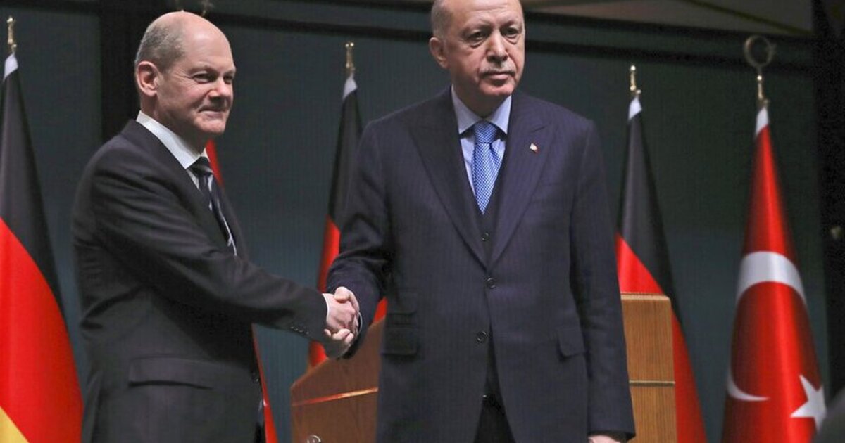 Ο καγκελάριος Όλαφ Σολτς αναγνώρισε την αποκλιμάκωση μεταξύ Ελλάδας και Τουρκίας κατά τη διάρκεια του δείπνου εργασίας που είχε με τον τούρκο πρόεδρο Ρετζέπ Ταγίπ Ερντογάν στην καγκελαρία το βράδυ της Παρασκευής, σύμφωνα με κύκλους της ομοσπονδιακής κυβέρνησης που επικαλείται το Γερμανικό Πρακτορείο Ειδήσεων (dpa). Κατά τις συνομιλίες, τέθηκαν το μεταναστευτικό και ο ρόλος της Τουρκίας, η κρίση στη Μέση Ανατολή, ο πόλεμος στην Ουκρανία, αλλά και διμερή θέματα.