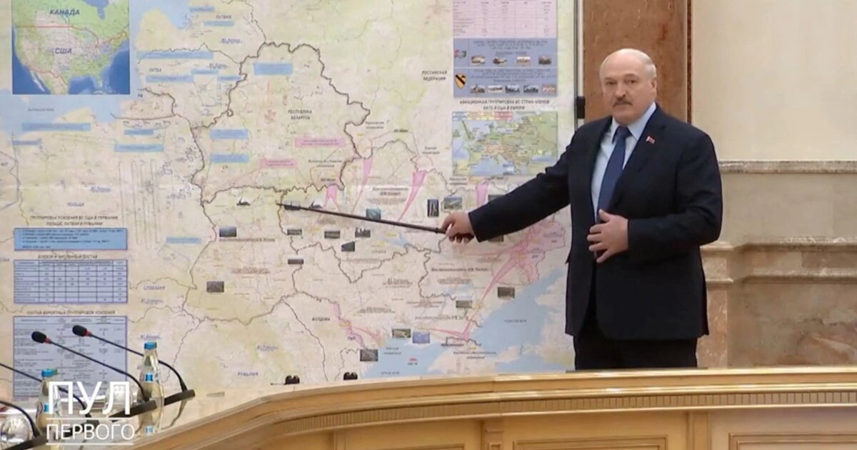 Ο Λευκορώσος πρόεδρος βρίσκεται μπροστά από ένα χάρτη, στον οποίο διακρίνονται προτεινόμενα σχέδια μάχης για τα ρωσικά στρατεύματα σε όλη την Ουκρανία.
