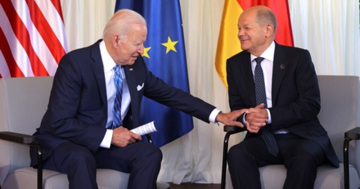 «Ειλικρινά, κάνετε καταπληκτική δουλειά!», είπε ο πρόεδρος των ΗΠΑ Τζο Μπάιντεν στον καγκελάριο Όλαφ Σολτς, αναφερόμενος στον ρόλο της Γερμανίας στον πόλεμο της Ουκρανίας, μετά την κατ' ιδίαν συνάντηση που είχαν οι δύο ηγέτες πριν από την επίσημη έναρξη της συνόδου κορυφής της Ομάδας των Επτά στην 'Ανω Βαυαρία.