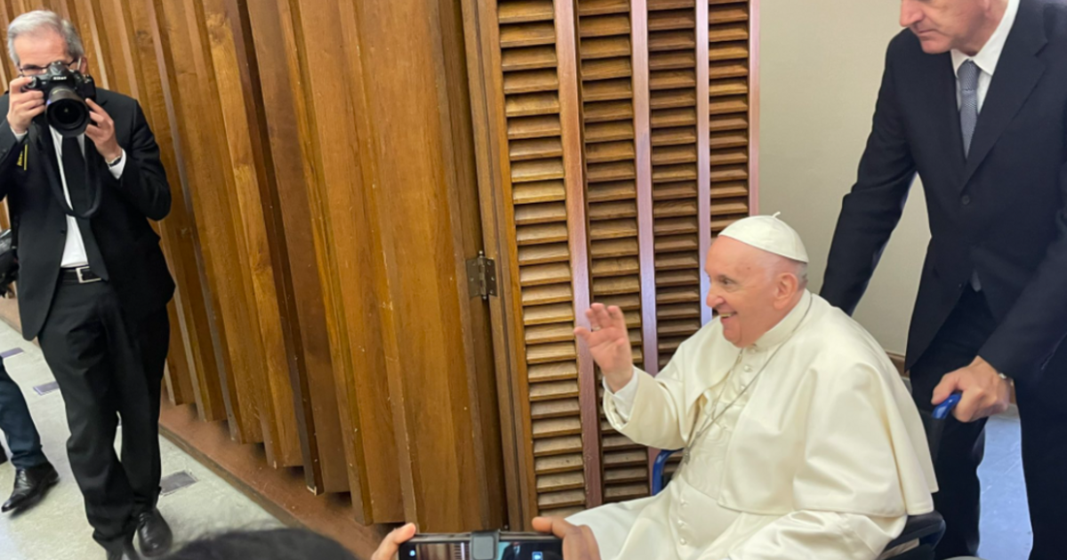 Ο Ποντίφικας Φραγκίσκος εμφανίστηκε σήμερα σε αναπηρικό καροτσάκι, πιθανότατα λόγω του πόνου στο γόνατο που τον οδήγησε την Τρίτη 3 Μαΐου στο χειρουργείο για μικρή επέμβαση διήθησης.