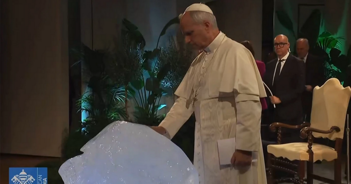 Ο πάπας Λέων ΙΔ΄ ευλόγησε ένα κομμάτι πάγου, για να απαντήσει στον Τραμπ που χαρακτηρίζει την κλιματική αλλαγή «απάτη»