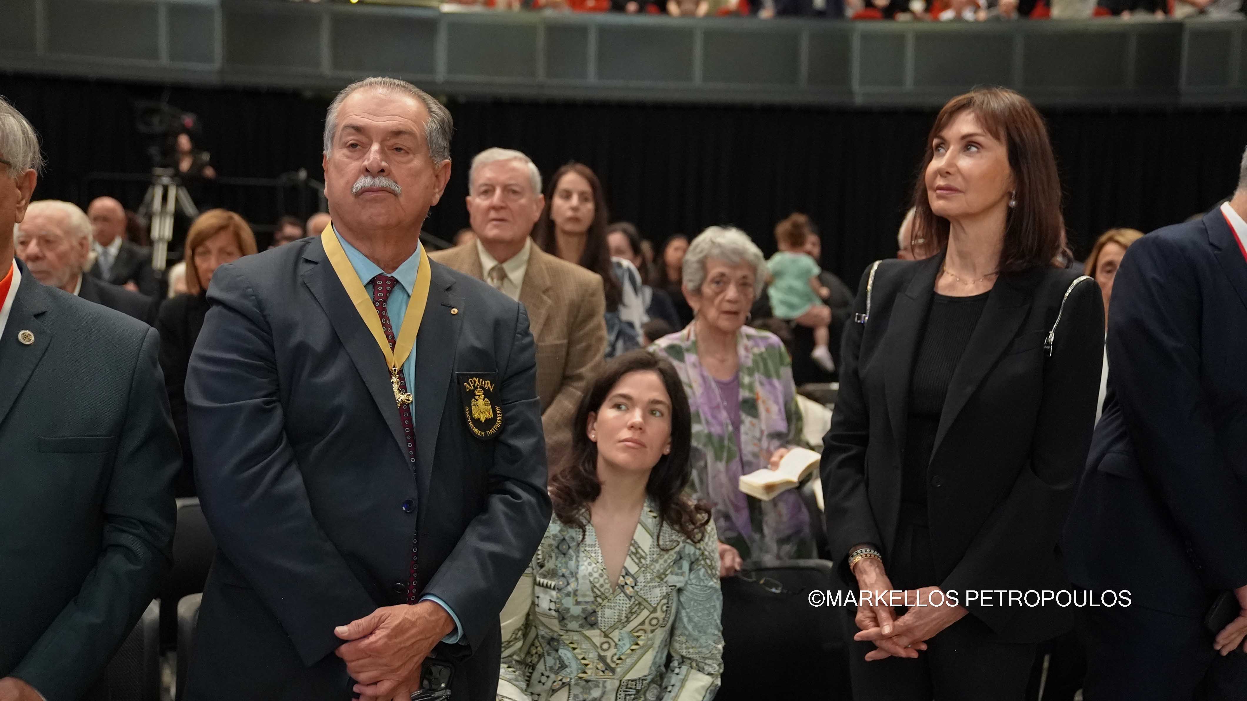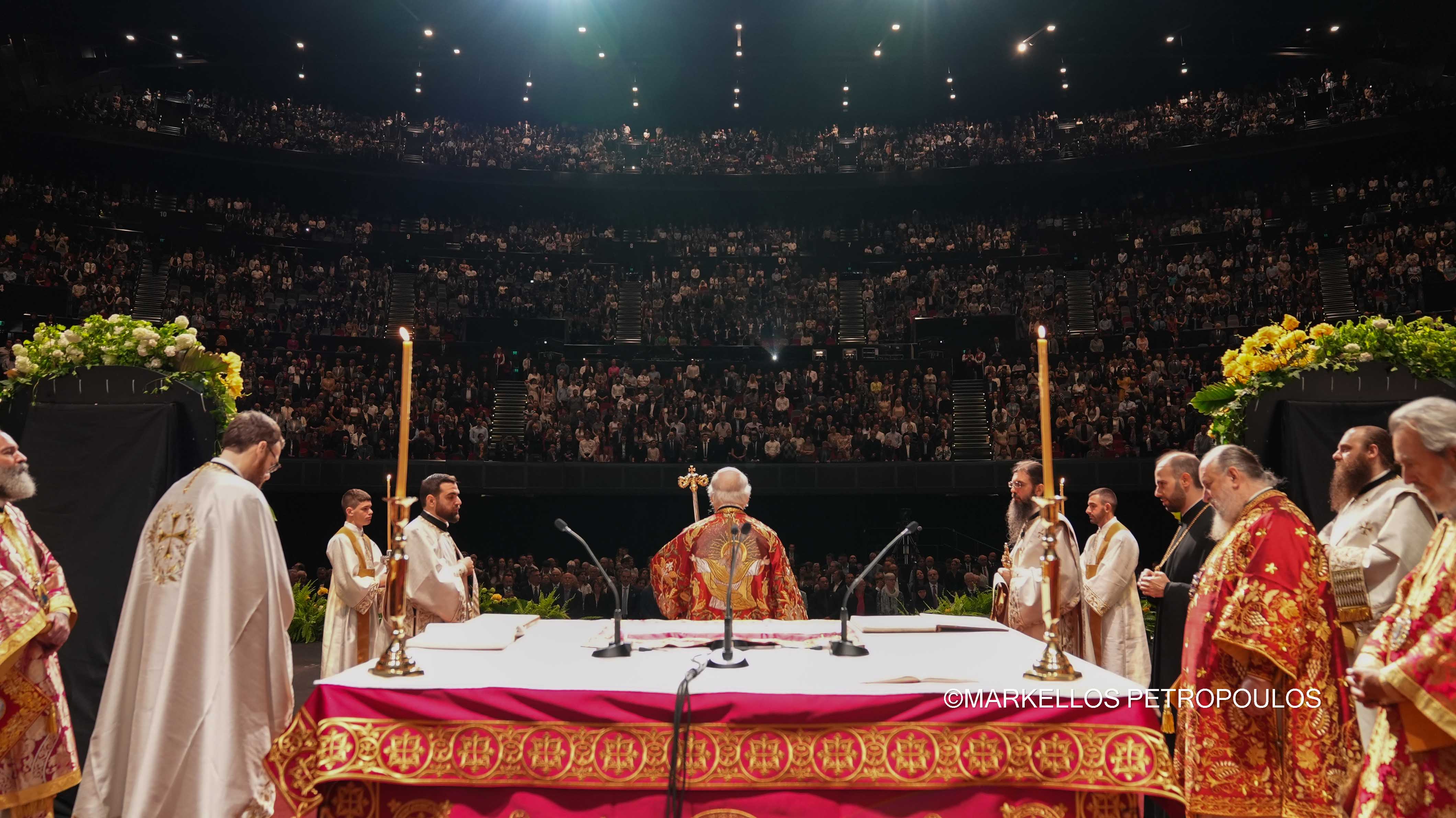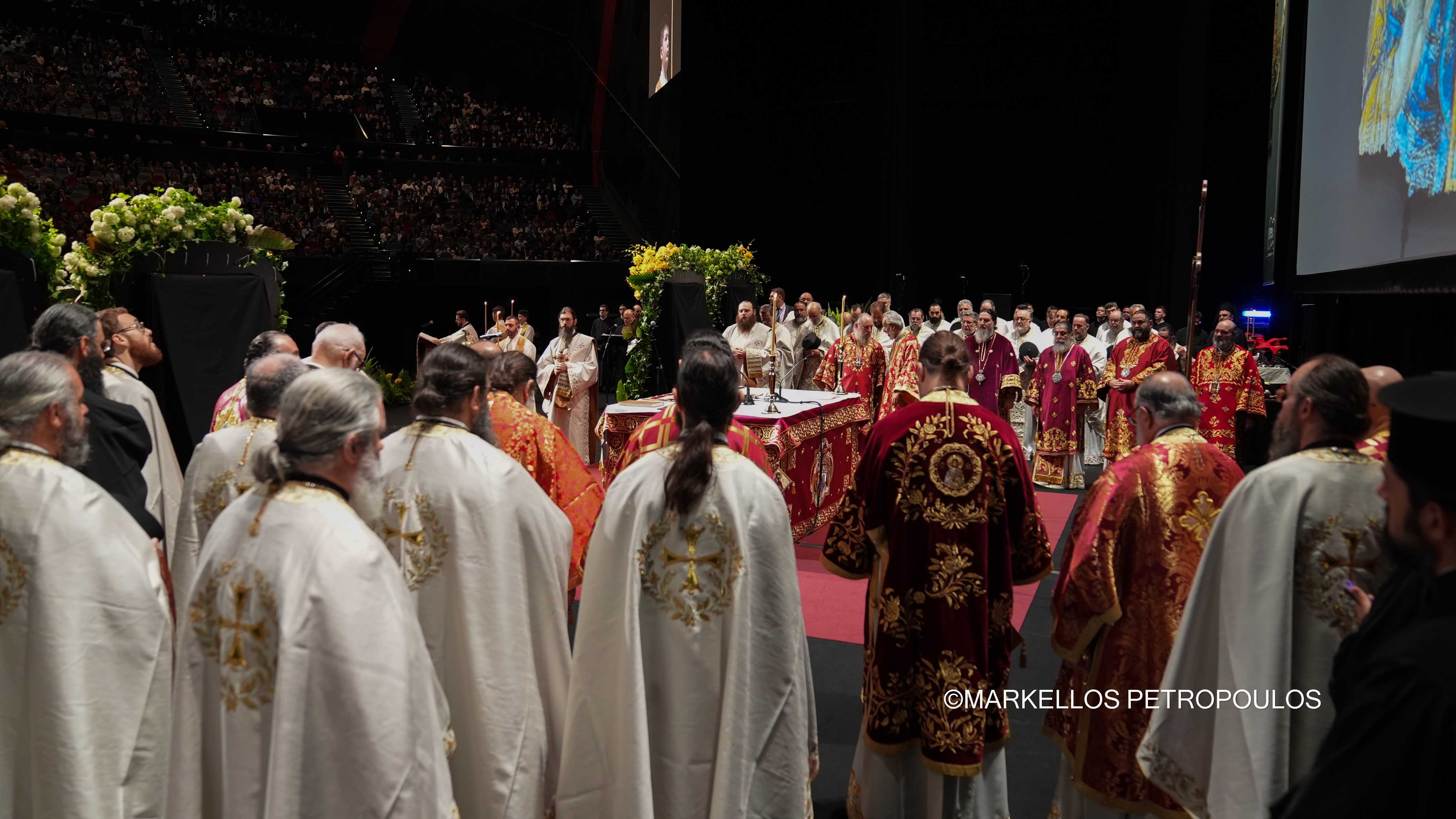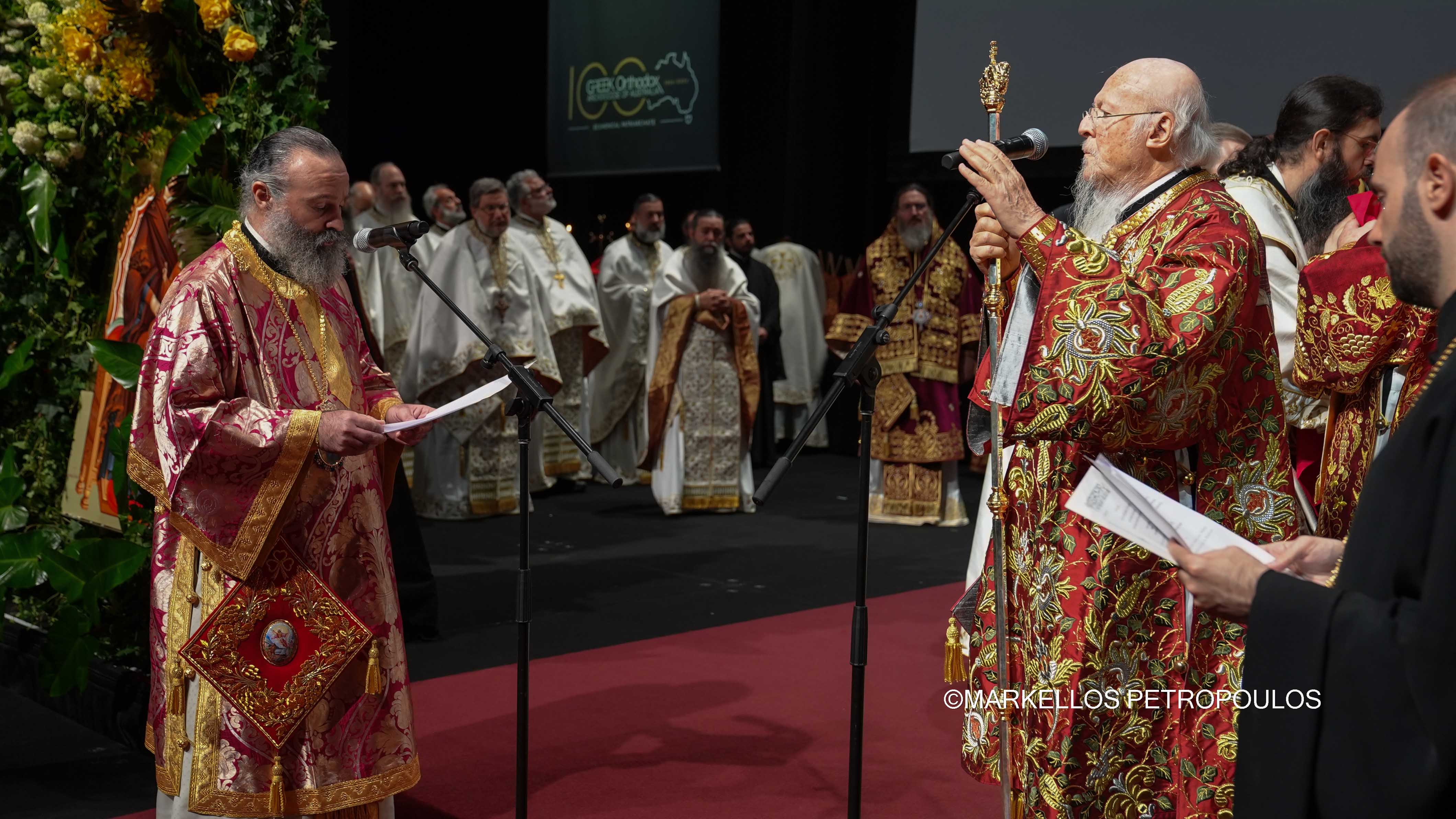Στην ιστορική Θεία Λειτουργία επί τω εορτασμώ της εκατονταετηρίδος της Ιεράς Αρχιεπισκοπής Αυστραλίας, η οποία τελέστηκε προεξάρχοντος του Προκαθημένου της Ορθοδόξου Εκκλησίας κ.κ. Βαρθολομαίου και συλλειτουργούντων του Σεβασμιωτάτου Αρχιεπισκόπου Αυστραλίας κ. Μακαρίου, των Θεοφιλεστάτων Επισκόπων, μελών της Ιεράς Επαρχιακής Συνόδου, των Σεβασμιωτάτων και Θεοφιλεστάτων Ιεραρχών: Δέρβης κ. Ιεζεκιήλ, Σεβαστείας κ. Σεραφείμ, Ίμβρου και Τενέδου, κ. Κυρίλλου, Μιλητουπόλεως κ. Ιακώβου, Μαγνησίας κ. Χριστοδούλου και Νικοπόλεως κ. Θεμιστοκλή (Πατριαρχείο Αλεξανδρείας), και κληρικών και μοναχών της Ιεράς Αρχιεπισκοπής Αυστραλίας, παρίσταντο, μεταξύ άλλων, ο Πρωθυπουργός της Νέας Νοτίου Ουαλίας, κ. Chris Minns, Υπουργός Μικρών Επιχειρήσεων, Περιουσίας και Πολυπολιτισμικότητος ΝΝΟ, κ. Steve Kamper, άλλοι Αυστραλοί Υπουργοί, Βουλευτές και Γερουσιαστές, ο Υφυπουργός Πολιτισμού της Ελλάδος, κ. Ιάσων Φωτήλας, εκπροσωπών την Ελληνική Κυβέρνηση, Πρέσβεις και Πρόξενοι, Άρχοντες της Μ.τ.Χ.Ε., και οι γονείς του Αρχιεπισκόπου Αυστραλίας, Εμμανουήλ και Φωτεινή Γρινιεζάκη.