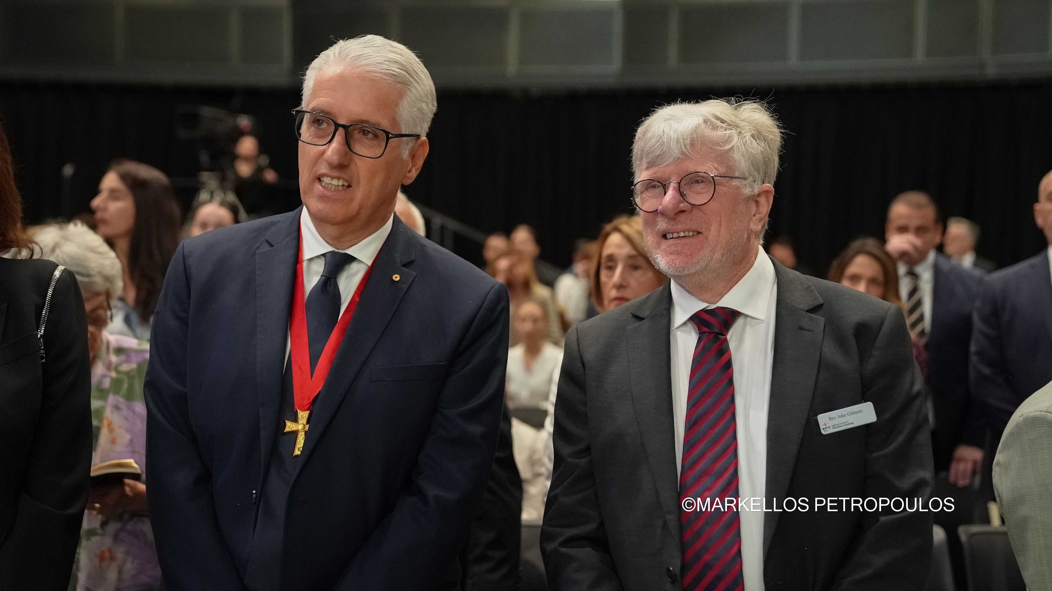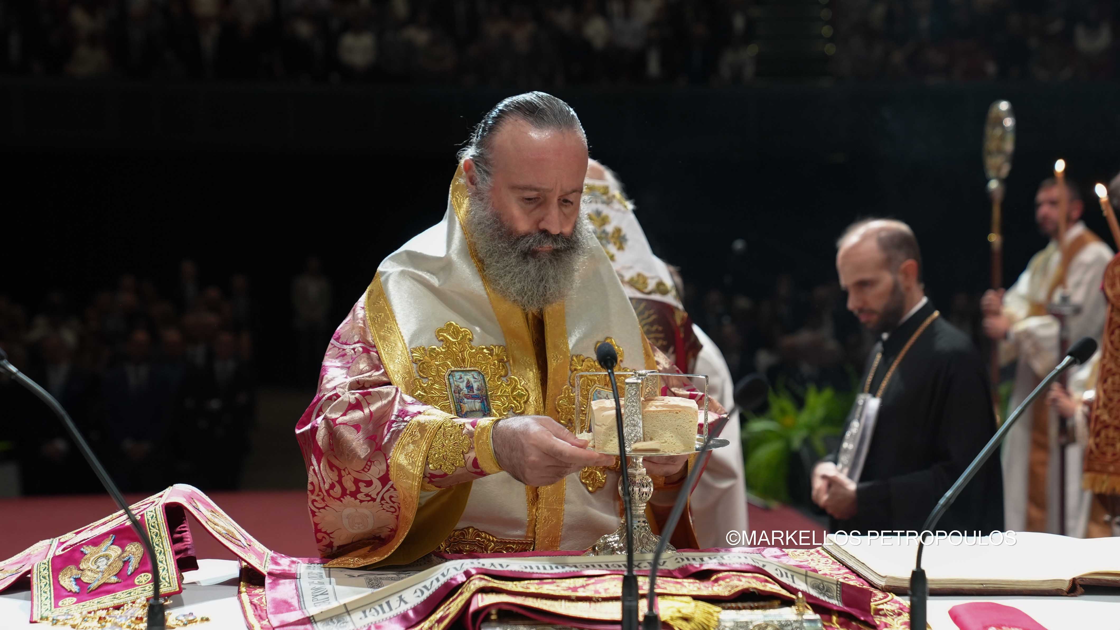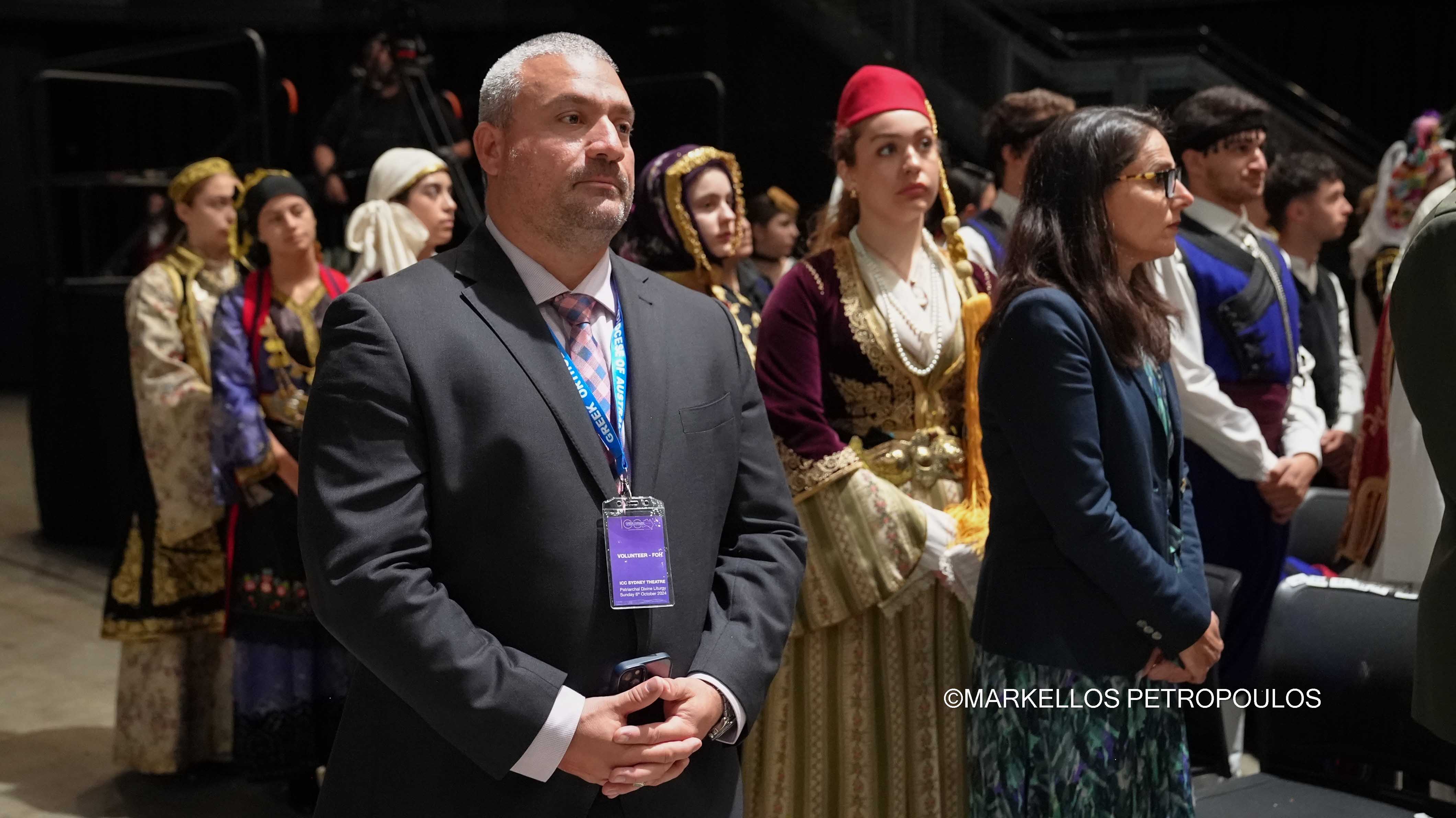 Στην ιστορική Θεία Λειτουργία επί τω εορτασμώ της εκατονταετηρίδος της Ιεράς Αρχιεπισκοπής Αυστραλίας, η οποία τελέστηκε προεξάρχοντος του Προκαθημένου της Ορθοδόξου Εκκλησίας κ.κ. Βαρθολομαίου και συλλειτουργούντων του Σεβασμιωτάτου Αρχιεπισκόπου Αυστραλίας κ. Μακαρίου, των Θεοφιλεστάτων Επισκόπων, μελών της Ιεράς Επαρχιακής Συνόδου, των Σεβασμιωτάτων και Θεοφιλεστάτων Ιεραρχών: Δέρβης κ. Ιεζεκιήλ, Σεβαστείας κ. Σεραφείμ, Ίμβρου και Τενέδου, κ. Κυρίλλου, Μιλητουπόλεως κ. Ιακώβου, Μαγνησίας κ. Χριστοδούλου και Νικοπόλεως κ. Θεμιστοκλή (Πατριαρχείο Αλεξανδρείας), και κληρικών και μοναχών της Ιεράς Αρχιεπισκοπής Αυστραλίας, παρίσταντο, μεταξύ άλλων, ο Πρωθυπουργός της Νέας Νοτίου Ουαλίας, κ. Chris Minns, Υπουργός Μικρών Επιχειρήσεων, Περιουσίας και Πολυπολιτισμικότητος ΝΝΟ, κ. Steve Kamper, άλλοι Αυστραλοί Υπουργοί, Βουλευτές και Γερουσιαστές, ο Υφυπουργός Πολιτισμού της Ελλάδος, κ. Ιάσων Φωτήλας, εκπροσωπών την Ελληνική Κυβέρνηση, Πρέσβεις και Πρόξενοι, Άρχοντες της Μ.τ.Χ.Ε., και οι γονείς του Αρχιεπισκόπου Αυστραλίας, Εμμανουήλ και Φωτεινή Γρινιεζάκη.