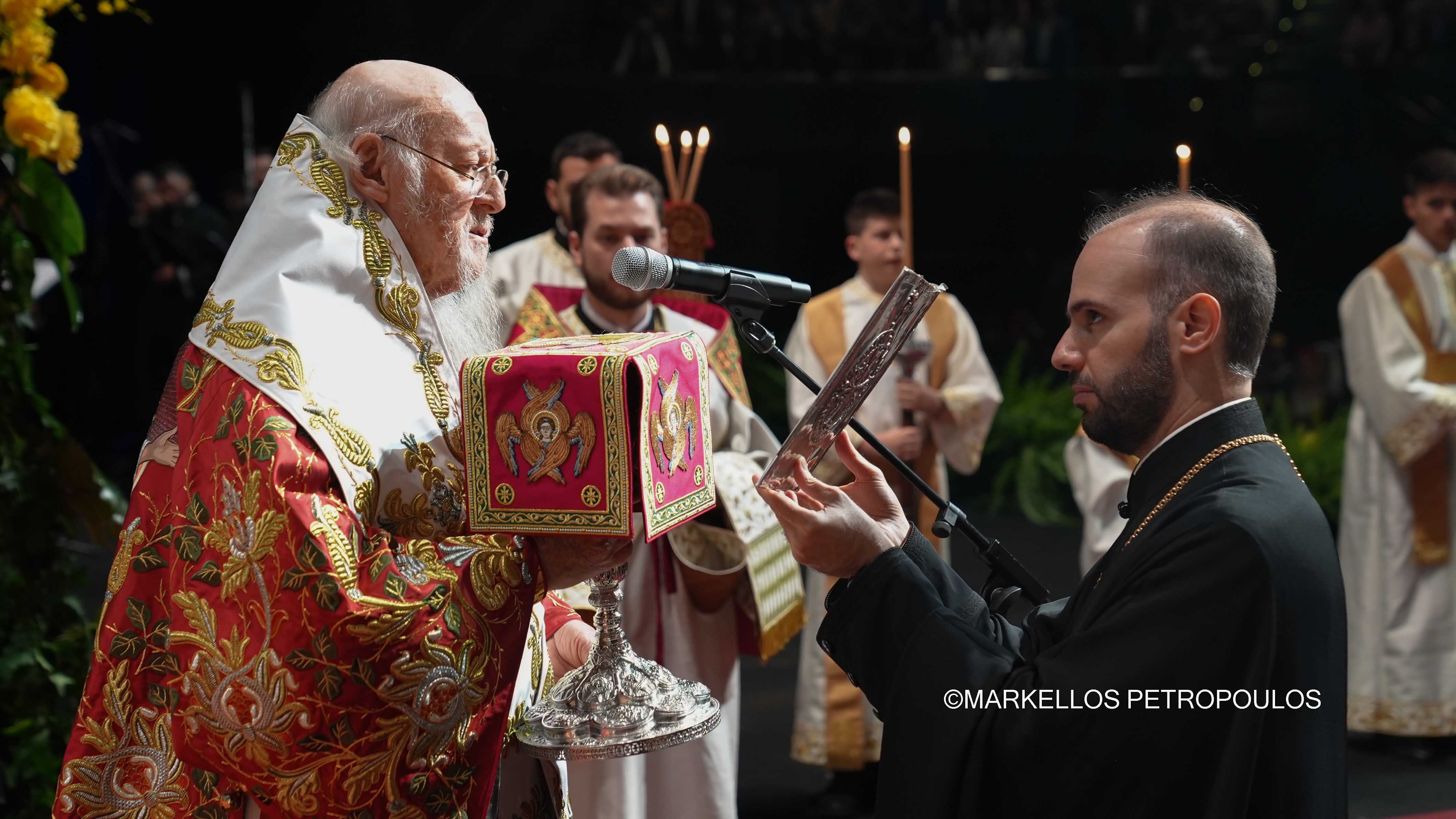 Κατά την εμπνευσμένη ομιλία του, ο Οικουμενικός Πατριάρχης μνημόνευσε, καταρχάς, τους πρωτοπόρους μετανάστες, οι οποίοι κατέφθασαν στους Αντίποδες εν μέσω πολλών δυσκολιών και «το πρώτον μέλημά των ήτο η οικοδόμησις τόπων λατρείας, οίκων του Θεού». Επισημαίνοντας ότι στην Αυστραλία βρήκαν «γήν αγαθήν και φιλόξενον και επρόκοψαν και εμεγαλούργησαν», εξέφρασε την πατρική ικανοποίησή του για τη διατήρηση της πατρώας ευσεβείας και πίστεως. «Δικαίως εγκαυχώμεθα διά την ενταύθα Ομογένειαν», επισήμανε, «ήτις αποτελεί εκλεκτόν ποίμνιον του Οικουμενικού Πατριαρχείου, την διαποίμανσιν του οποίου ανέλαβε προ πέντε ετών ο ιερώτατος Αρχιεπίσκοπος Μακάριος, εις διαδοχήν του μακαριστού μεγάλου ιεράρχου Στυλιανού». «Δεν απέστειλεν ενταύθα η Αγία του Χριστού Μεγάλη Εκκλησία Ιεράρχην τον τυχόντα», υπογράμμισε, «αλλά Μακάριον τον από Χριστουπόλεως, άνδρα λόγιον και πεπαιδευμένον, πνευματικόν ανάστημα της ημών Μετριότητος και πνευματικόν τέκνον ηγαπημένον, τον οποίον εστερήθημεν από την διακονίαν και την υπηρεσίαν της Μητρός Εκκλησίας πλησίον ημών, αλλά εθεωρήσαμεν ότι διά την Αυστραλίαν αξίζει ικανός οιακοστρόφος, Ποιμενάρχης πιστός και αφοσιωμένος εις το Ιερόν Κέντρον, διά να καλλιεργήση αυτήν την αγάπην και τον άρρηκτον σύνδεσμον, παντί σθένει και πάση δυνάμει, και εις το εμπιστευθέν αυτώ ποίμνιον».