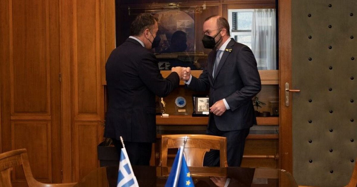 O υπουργός Εθνικής Άμυνας, Νίκος Παναγιωτόπουλος, συναντήθηκε χθες, Πέμπτη 3 Μαρτίου, με τον επικεφαλής της Κοινοβουλευτικής Ομάδας του Ευρωπαϊκού Λαϊκού Κόμματος, Μάνφρεντ Βέμπερ.