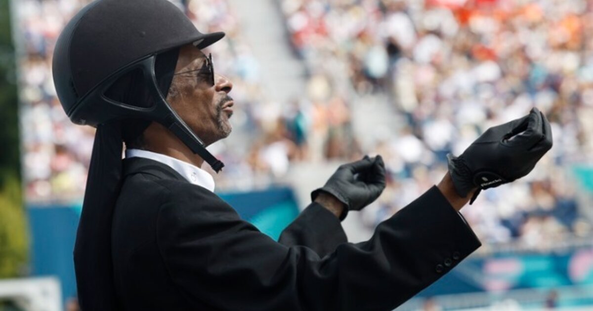 Snoop Dogg watching the Dressage Team Grand Prix Special at the Chateau de Versailles on the eighth day of the 2024 Paris Olympic Games in France.