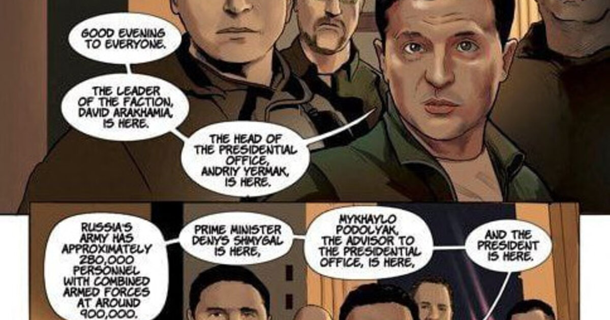 Σύμφωνα με ουκρανικά κανάλια στο Telegram, το συγκεκριμένο κόμικ έχει 22 σελίδες. Ο Ουκρανός πρόεδρος είναι κάποιος «ο οποίος κάποτε έπαιζε έναν φανταστικό πρόεδρο σε τηλεοπτική σειρά, ήρθε στην εξουσία το 2019 με την υπόσχεση να τερματίσει τον πόλεμο στην ανατολική Ουκρανία.