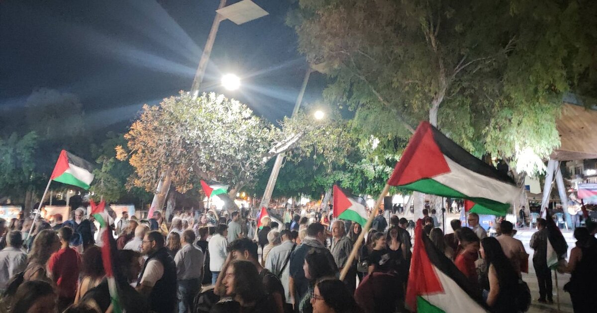 «Άμεση κατάπαυση του πυρός» ζητούσαν οι συμμετέχοντες, οι οποίοι κρατούσαν πλακάτ που έγραφαν «Λευτεριά στην Παλαιστίνη» και «Αφήστε τη Γάζα να ζήσει, σταματήστε να χρηματοδοτείτε τη γενοκτονία».