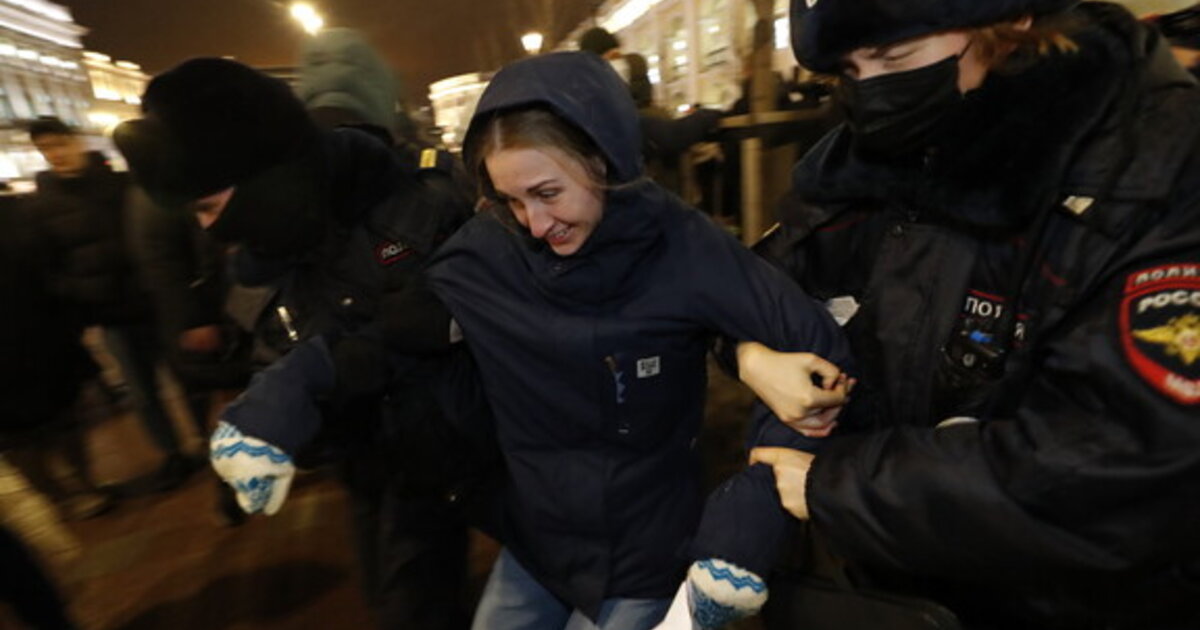 Στην Αγία Πετρούπολη, τη δεύτερη μεγαλύτερη πόλη της Ρωσίας, αστυνομικοί περικύκλωσαν τους πάνω από 170 ανθρώπους που βγήκαν στην βασική οδική αρτηρία της πόλης, τη Nevsky Prospekt. Φορώντας κράνη και πλήρη εξοπλισμό, χτύπησαν διαδηλωτές και τους έριξαν στο έδαφος.