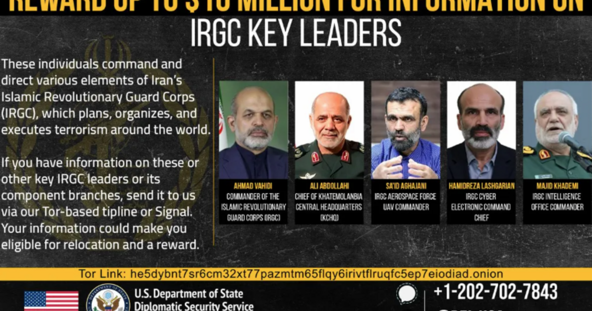 Οι ΗΠΑ προσφέρουν αμοιβή 10 εκατομμυρίων δολαρίων για πληροφορίες σχετικά με βασικά ηγετικά στελέχη του Σώματος των Φρουρών της Ισλαμικής Επανάστασης (IRGC) του Ιράν, σύμφωνα με ανακοίνωση που εξέδωσε το υπουργείο.