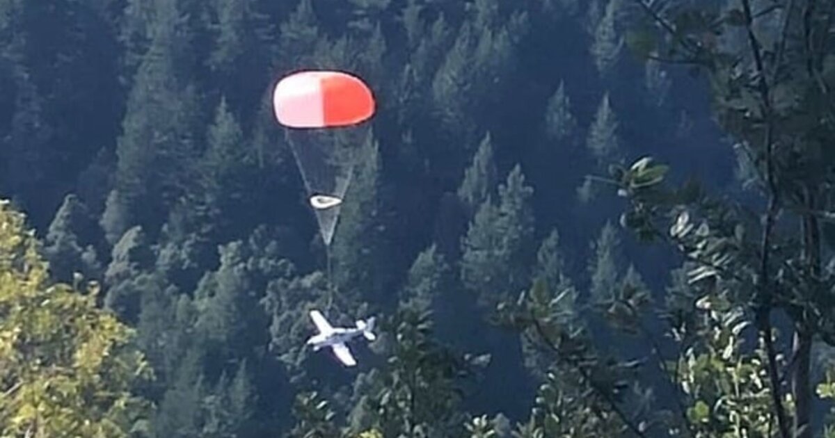 Ένα ζευγάρι από την Καλιφόρνια και το 2χρονο παιδί τους επέζησαν από αεροπορικό ατύχημα αφού ανέπτυξαν ένα αλεξίπτωτο για να επιβραδύνουν την καθοδική πορεία του μικρού αεροπλάνου σε μια δασώδη, ορεινή περιοχή.