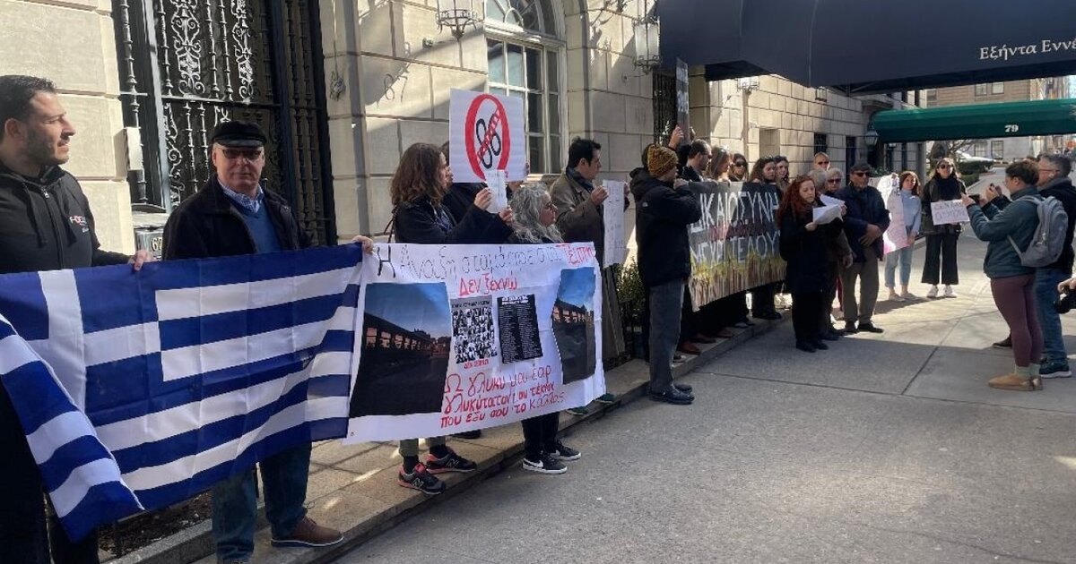 Έλληνες ομογενείς διαδήλωσαν έξω από το Γενικό Προξενείο της Ελλάδας στο Μανχάταν της Νέας Υόρκης και στην πλατεία Αθηνών στην Αστόρια