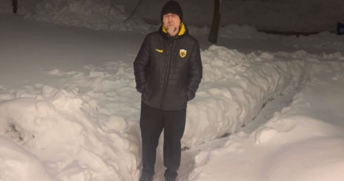 «Τώρα είναι -2 βαθμούς Κελσίου. Η θερμοκρασία είχε φτάσει μέχρι τους -20 βαθμούς Κελσίου τις προηγούμενες μέρες» είπε αποκαλύπτοντας ότι αυτό που τους επηρέασε ήταν η χιονοθύελλα. «Το χιόνι που έπεσε ξαφνικά μας απέκλεισε. Είναι πρώτη φορά που συμβαίνει τόσο ακραίο το φαινόμενο αυτό»» ανέφερε ο ιερές και ένθερμος υποστηρικτής της ΑΕΚ, αν κρίνει κανείς από το αθλητικό μπουφάν που φορούσε.