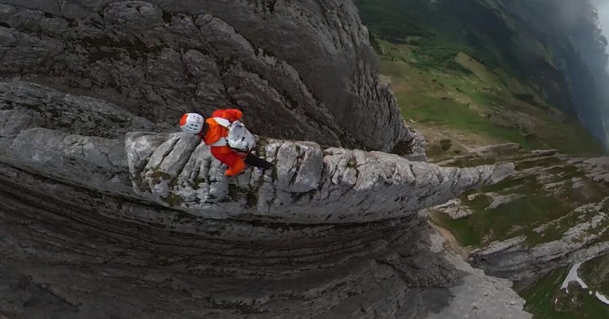 Πλάνα δείχνουν τους δυο αθλητές να σκαρφαλώνουν και να προχωρούν σε αυτή τη ράχη σε μεγάλο υψόμετρο.