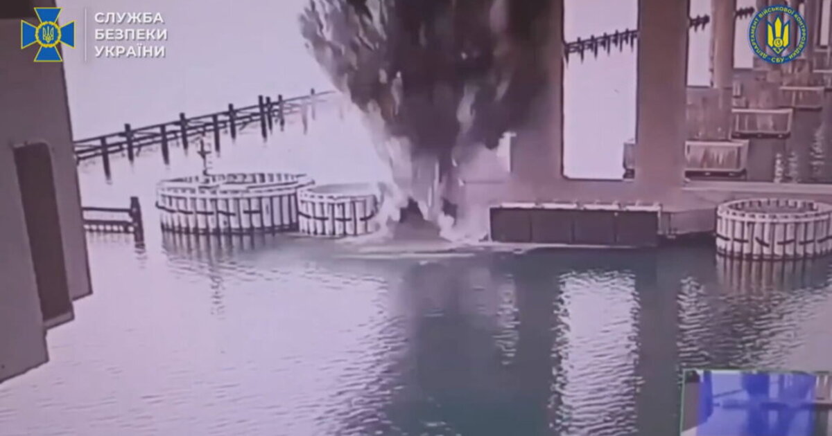 Οι μυστικές υπηρεσίες της Ουκρανίας έδωσαν στη δημοσιότητα τις εικόνες της νέας επίθεσής τους στη γέφυρα της Κριμαίας. Αναφέρουν πως κάτω από τη γέφυρα είχαν τοποθετήσει 1.100 κιλά εκρηκτικών και πως σημειώθηκαν ζημιές στους πυλώνες της.