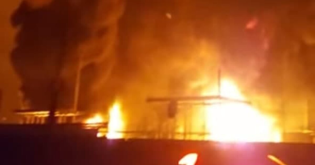 Οι εικόνες από την πυρκαγιά συγκλονίζουν, ενώ σύμφωνα με πληροφορίες η φωτιά προκλήθηκε από ρωσικό πύραυλο.