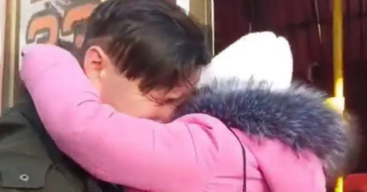 Συγκεκριμένα μητέρα και κόρη φαίνεται να ανεβαίνουν σε ένα λεωφορείο την ώρα που ο πατέρας μένει πίσω και αποχαιρετά το παιδί του με δάκρυα στα μάτια.
