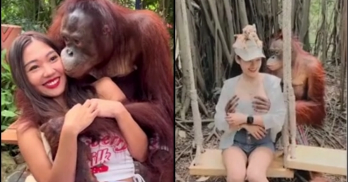 Ένας ουρακοτάγκος σε ζωολογικό κήπος της Ταϊλάνδης συνηθίζει να πιάνει απρεπώς τις γυναίκες επισκέπτριες