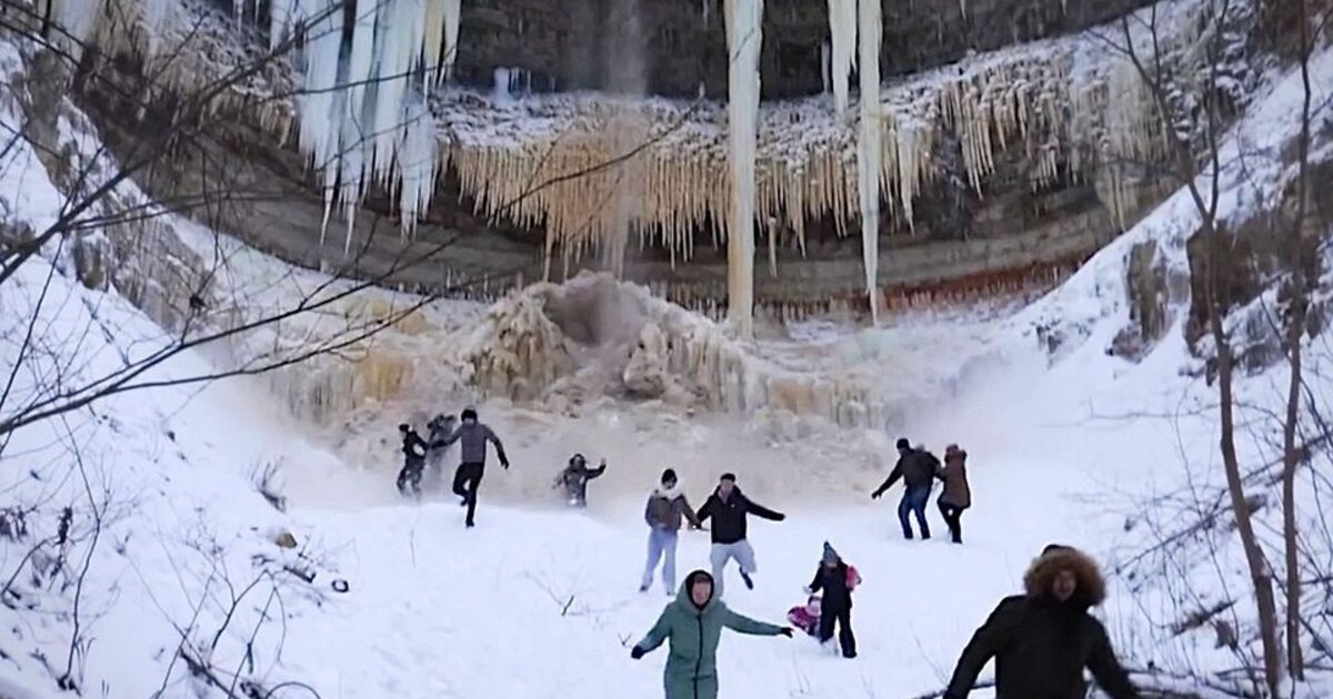 Στην Εσθονία ο παγωμένος καταρράκτης Βαλάστε προσελκύει πολλούς επισκέπτες που θαυμάζουν το εκπληκτικό σκηνικό.