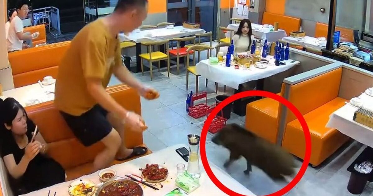 Ένα μικρό αγριογούρουνο σε αναζήτηση τροφής εισέβαλλε σε εστιατόριο στην Κινεζική επαρχία Τζιανγκσού, προκαλώντας τρόμο στους πελάτες.