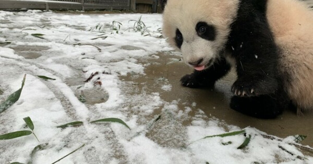Ένα μωρό πάντα στον Εθνικό Ζωολογικό Κήπο του Smithsonian απόλαυσε την πρώτη χιονόπτωση της χρονιάς με τον πιο αξιολάτρευτο τρόπο.
