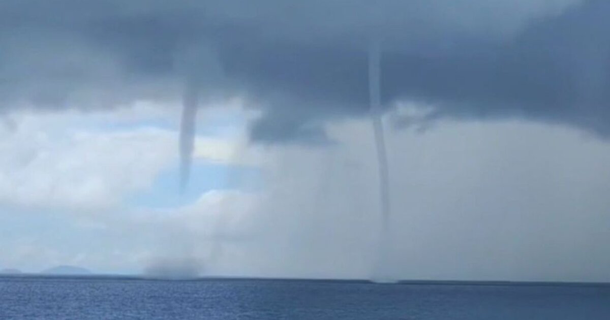 Δύο θαλάσσιοι υδροσίφωνες, κοινώς ανεμοστρόβιλοι, κινούνταν παράλληλα στη θάλασσα πολύ κοντά στο πλοίο.