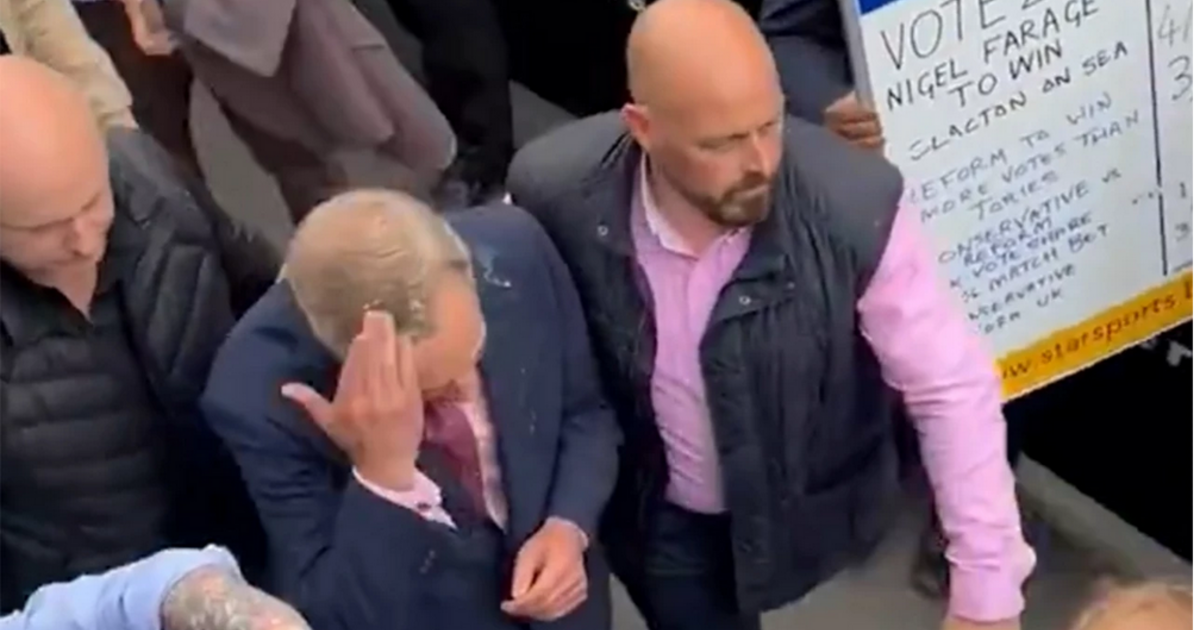 Λίγη ώρα αφού ξεκίνησε την εκστρατεία του για την έδρα του Κλάκτον-ον-Σι, στη νοτιοανατολική Αγγλία, μια γυναίκα τον πλησίασε ενώ έφευγε από μια παμπ και τον έλουσε με ένα μεγάλο ποτήρι αναψυκτικού. Στα πλάνα που αναρτήθηκαν σε ιστοτόπους κοινωνικής δικτύωσης ο Φάρατζ απομακρύνεται με τη βοήθεια των σωματοφυλάκων του και δείχνει να μην έχει πάθει τίποτα.