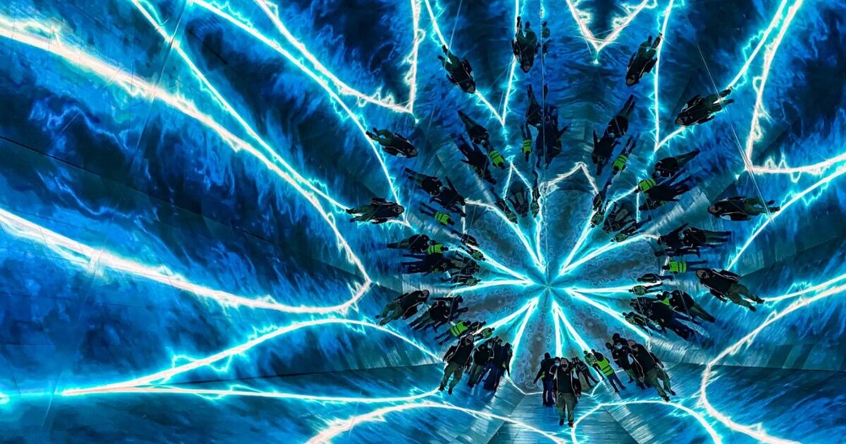 Για να κάνει την ατέρμονη αυτή ψευδαίσθηση εντονότερη, η STUFISH κάλυψε το χώρο, με πλακάκια LED τοίχου και δαπέδου και έπειτα, μεγέθυνε τα εφέ που προκαλούσαν με την εγκατάσταση ψηλών καθρεπτών.