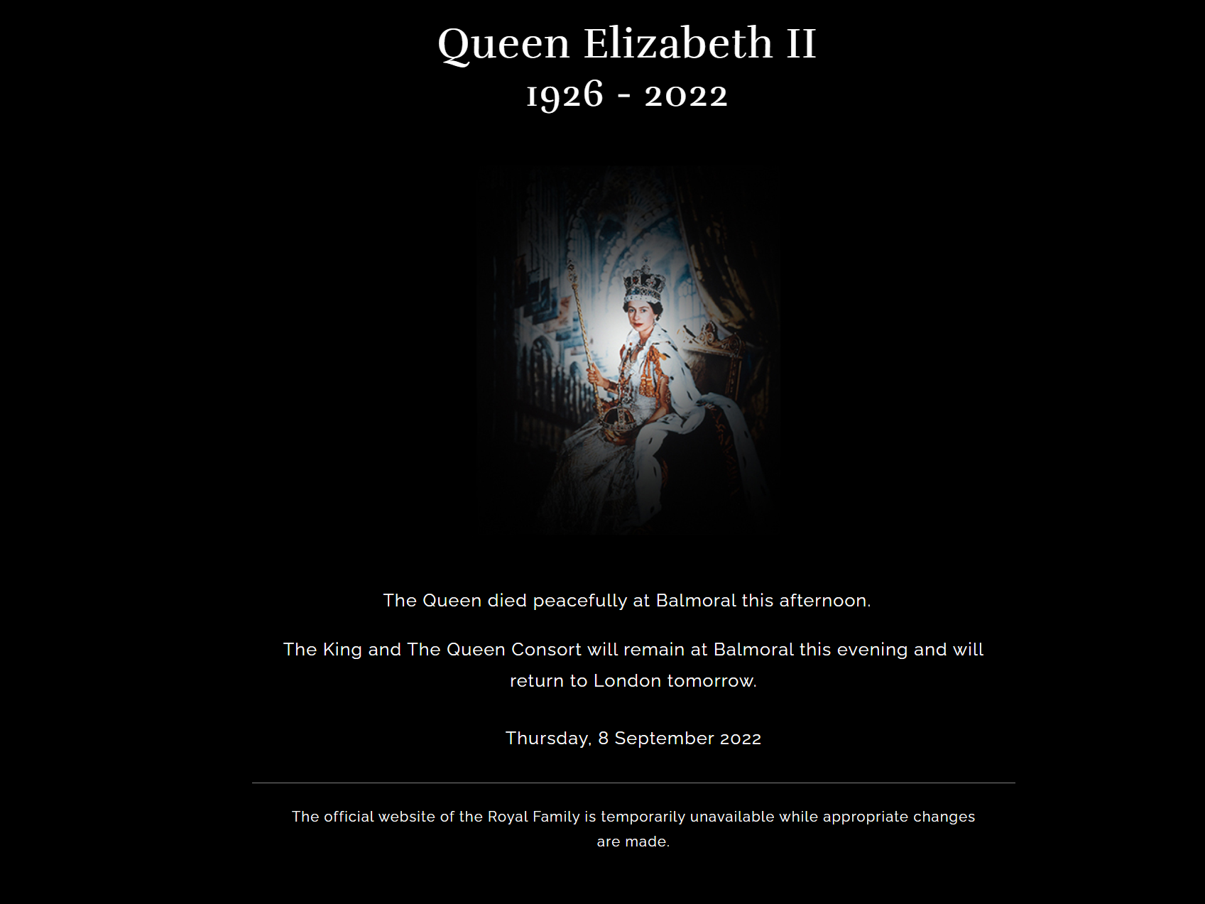 Ενώ ο επίσημος ιστότοπος της βασιλικής οικογένειας πενθεί με μια σύντομη ανακοίνωση που επιβεβαιώνει το θάνατο της Βασίλισσας