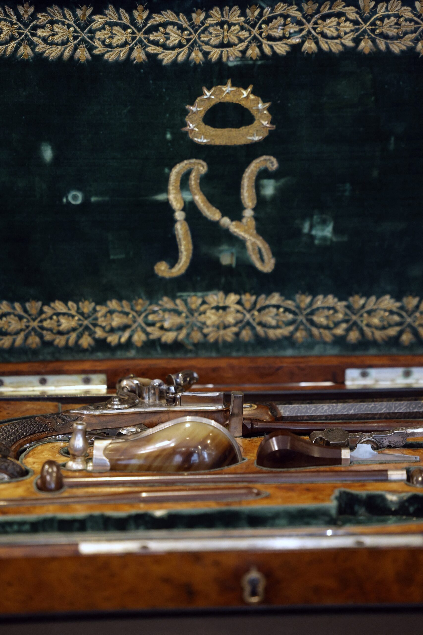 Τα πλούσια διακοσμημένα όπλα, επενδυμένα με χρυσό και ασήμι, φέρουν χαραγμένη την εικόνα του Ναπολέοντα.