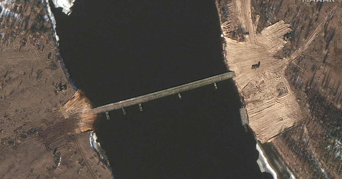 Δορυφορικές εικόνες που ελήφθησαν τις τελευταίες δύο ημέρες δείχνουν την κατασκευή νέων δρόμων και μιας γέφυρας που κατασκευάζεται σε ένα ποτάμι στη Λευκορωσία, λιγότερο από τέσσερα μίλια από τα ουκρανικά σύνορα, εν μέσω μιας συνεχιζόμενης, όπως λένε πηγές, συγκέντρωσης ρωσικών στρατιωτικών δυνάμεων που περικυκλώνουν τρεις πλευρές της Ουκρανίας.