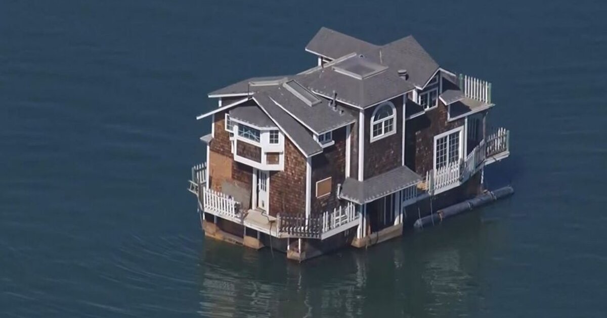 Το παράξενο θέαμα αφορούσε διώροφο πλωτό σπίτι που υπό κανονικές συνθήκες ήταν δεμένο στο Σαν Ματέο αλλά έλαβε ειδοποίηση ...έξωσης λόγω νομικών διαφορών με την Πολιτεία.