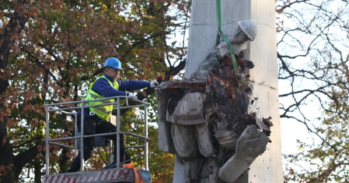 "Αυτό το μνημείο είναι ένα μνημείο ψεύδους", είπε ο Καρόλ Ναβρότσκι, επικεφαλής του Πολωνικού Ινστιτούτου Εθνικής Μνήμης (IPN), καθώς στεκόταν μπροστά σε ένα άγαλμα στο Γκουτσίτσα στη νότια Πολωνία λίγο πριν την αποκαθήλωσή του.