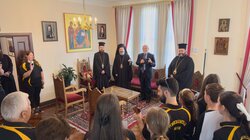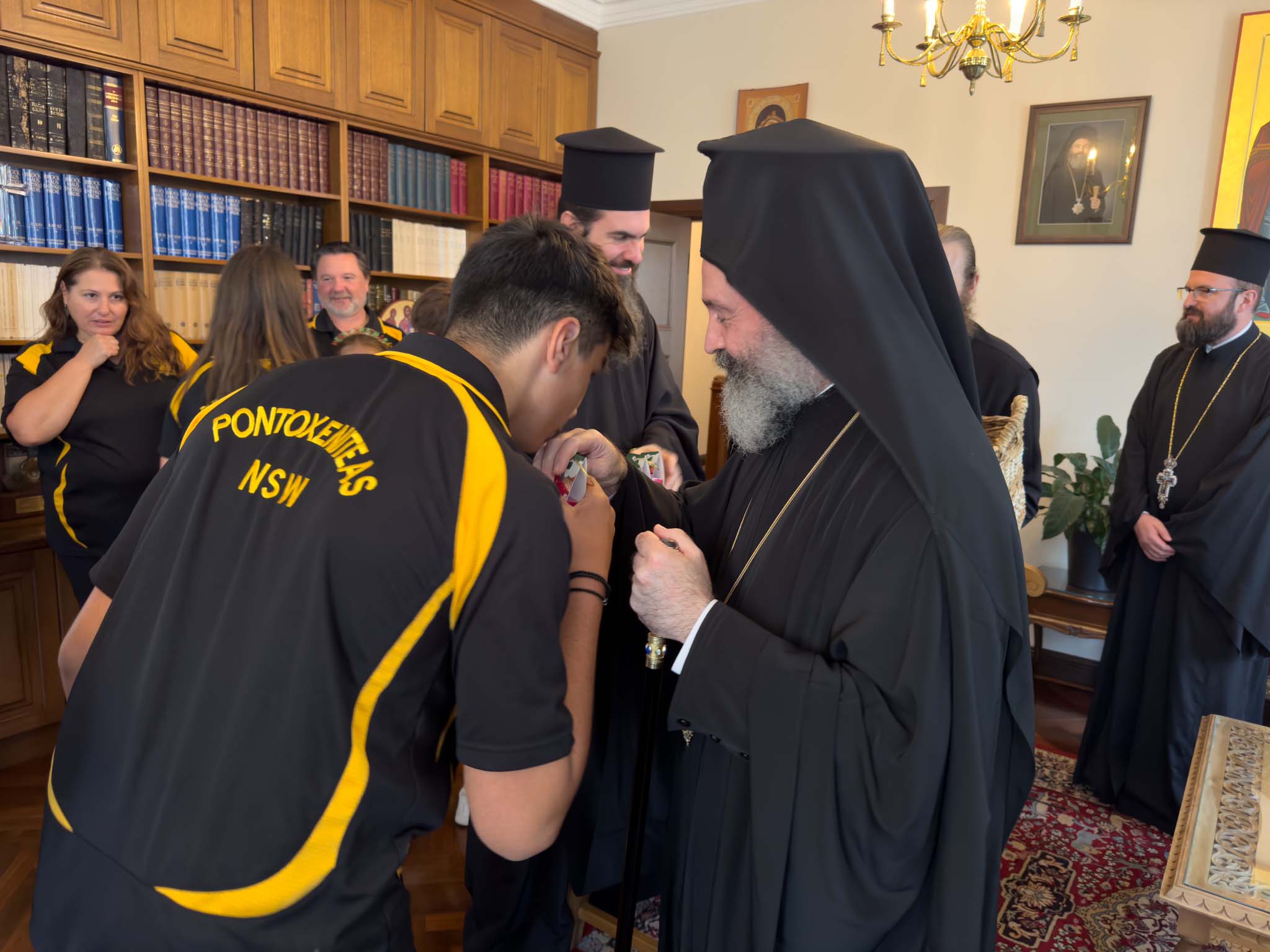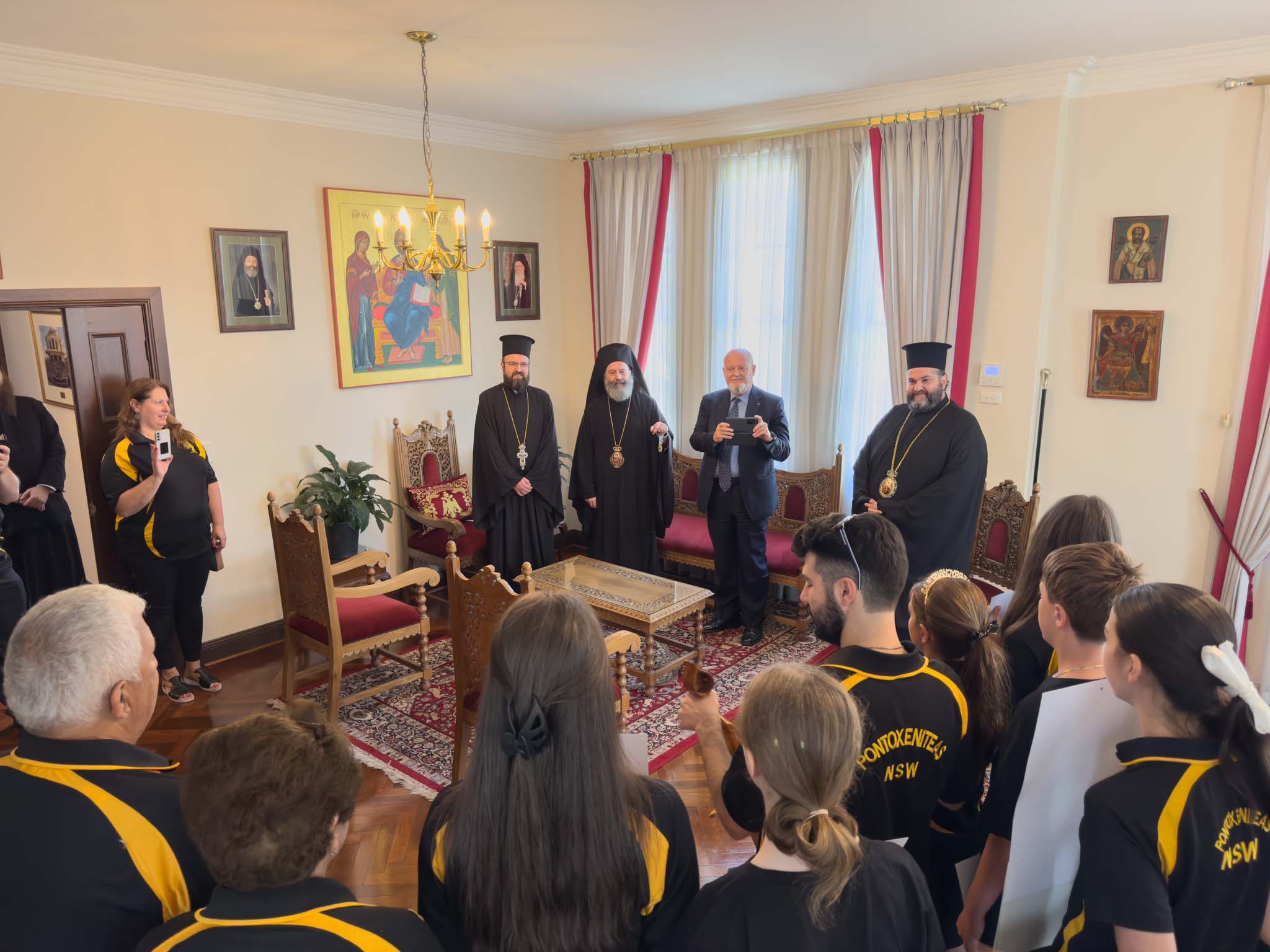 Παρόντες ήταν ο Θεοφιλέστατος Επίσκοπος Χαριουπόλεως κ. Βαρθολομαίος, ο ποντιακής καταγωγής Πρωτοσύγκελλος της Ιεράς Αρχιεπισκοπής Αυστραλίας, Πανοσιολογιώτατος Αρχιμανδρίτης του Οικουμενικού Θρόνου κ. Χριστοφόρος Κρικέλης, καθώς και ο Πρέσβης της Ρουμανίας στην Αυστραλία, κ. Radu Gabriel Safta, ο οποίος πραγματοποιούσε επίσκεψη στον Αρχιεπίσκοπο.