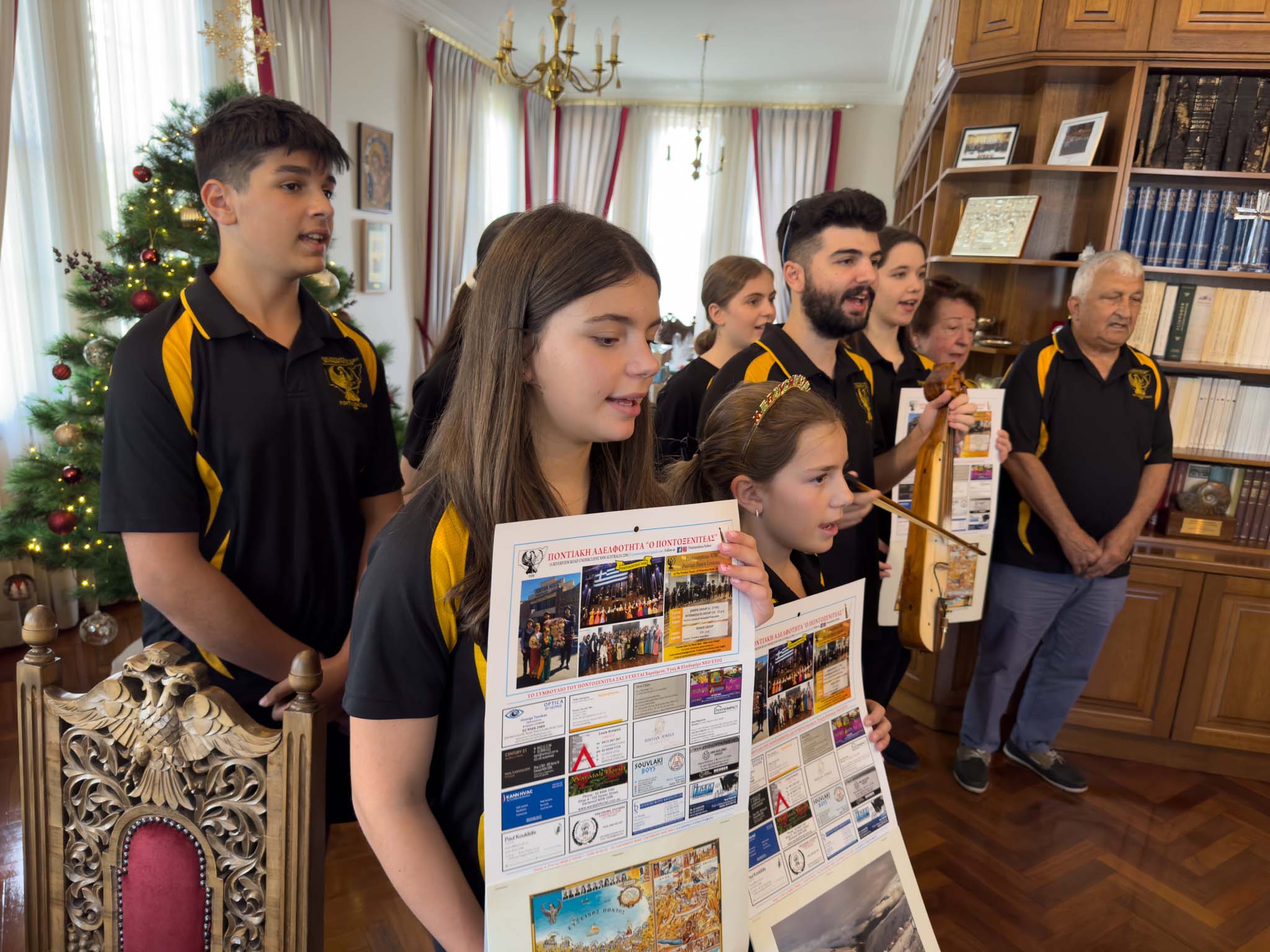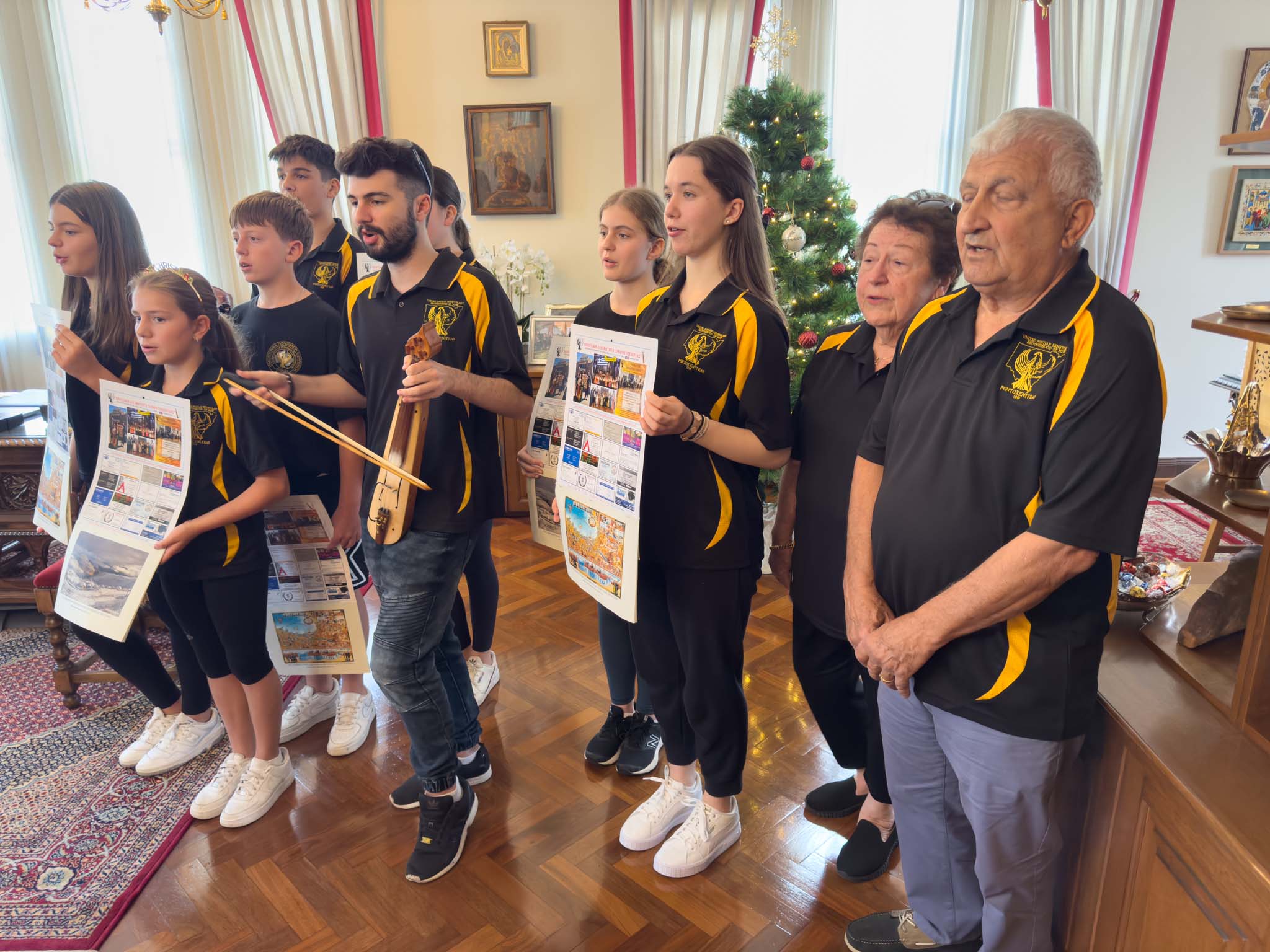 Ποντιακά κάλαντα των Χριστουγέννων, με τη συνοδεία ποντιακή λύρας, άκουσε ο Σεβασμιώτατος Αρχιεπίσκοπος Αυστραλίας κ.κ. Μακάριος από νέους και παιδιά της Ποντιακής Αδελφότητας Νέας Νοτίου Ουαλίας «Ποντοξενιτέας», που τον επισκέφθηκαν στην έδρα της Ιεράς Αρχιεπισκοπής, στο Σύδνεϋ.