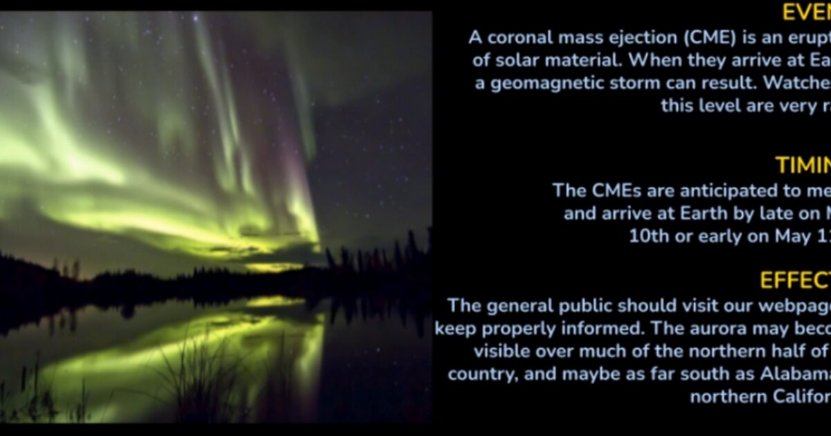Στην ανακοίνωσή τους, οι αξιωματούχοι της ΝΟΑΑ εξηγούσαν πώς οι εκτοξεύσεις της ύλης και μαγνητικού πεδίου από την ατμόσφαιρα του ήλιου θα μπορούσαν να προκαλέσουν προβλήματα σε εκατομμύρια ανθρώπους ήδη από το μεσημέρι της Παρασκευής (10/05).